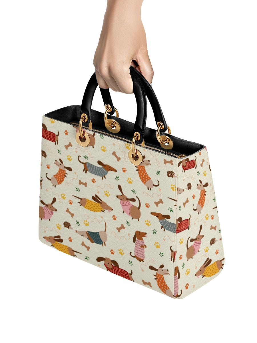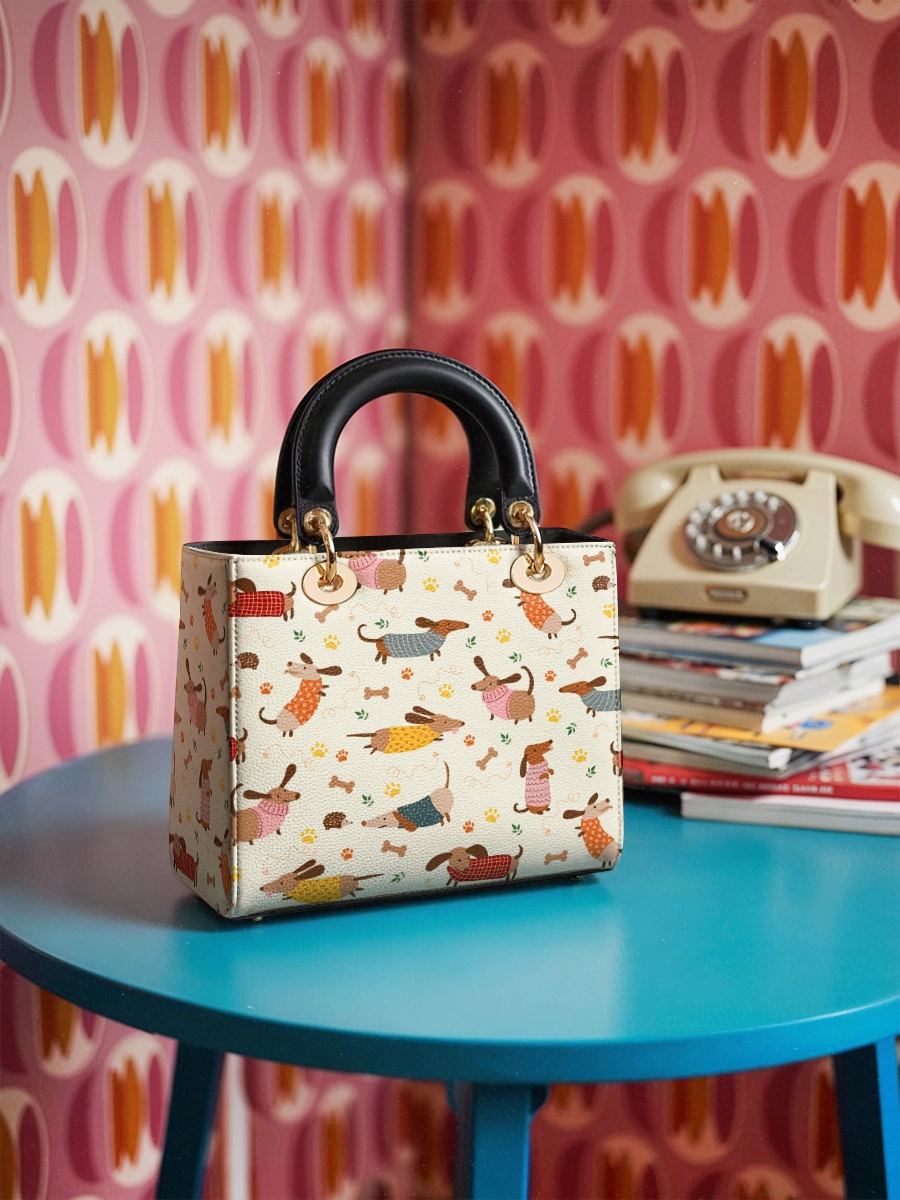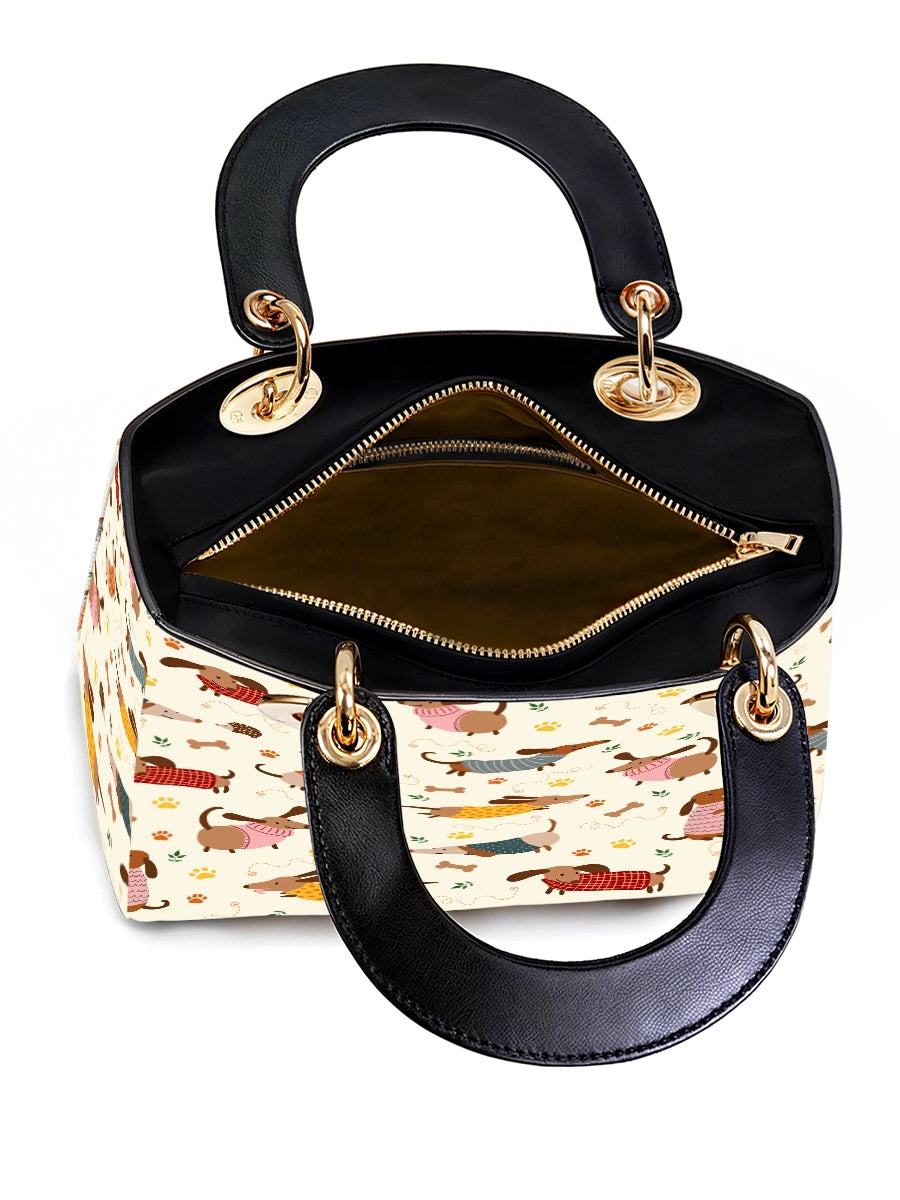 The Lady Leather Bag by DachyCharm brings timeless elegance to everyday moments. With its structured silhouette, sturdy top handles, and charming details, it’s the perfect blend of grace and personality — made for dachshund lovers who adore a touch of sophistication.