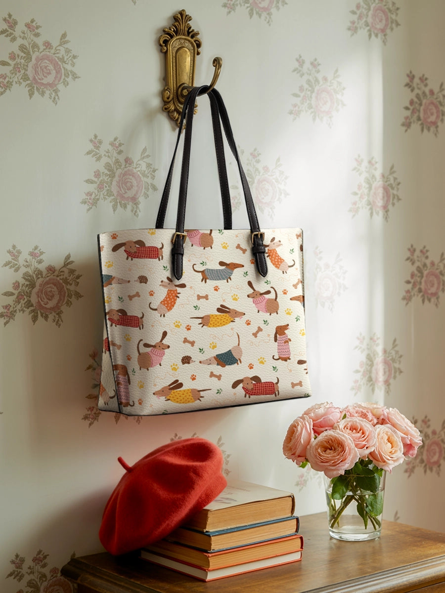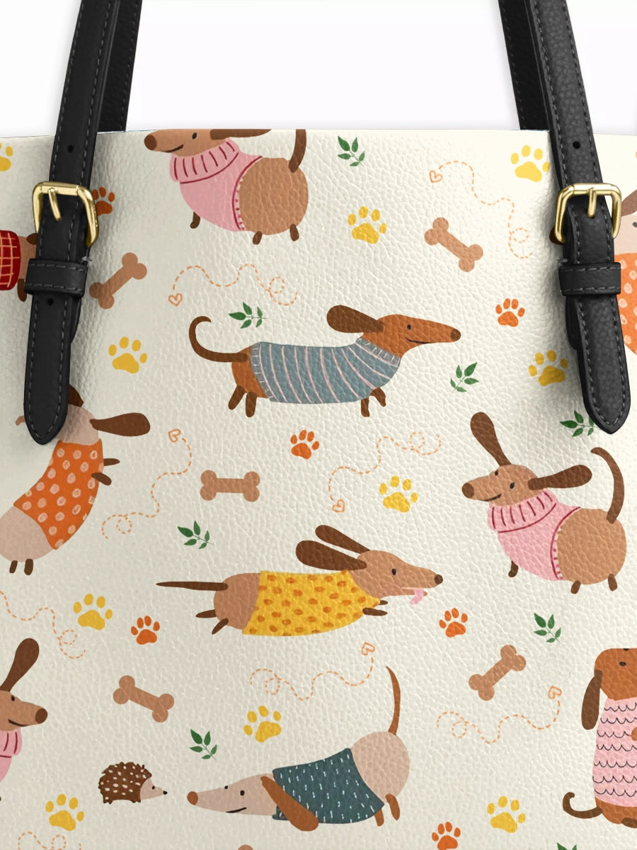 DachyCharm Doxie Whimsy Leather Tote Bag