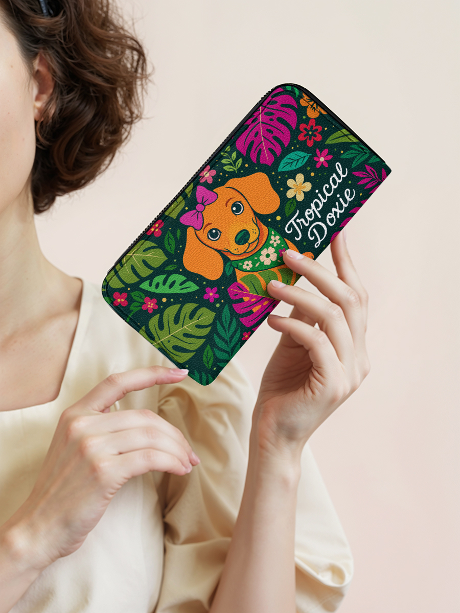 DachyCharm Tropical Doxie Leather Crossbody Bag