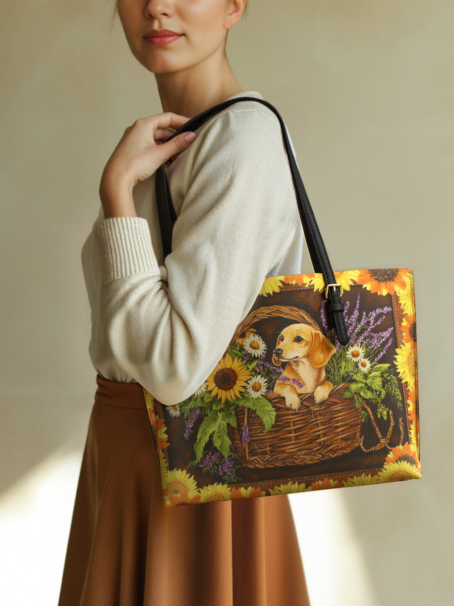 DachyCharm Dachshund Basket Leather Tote Bag