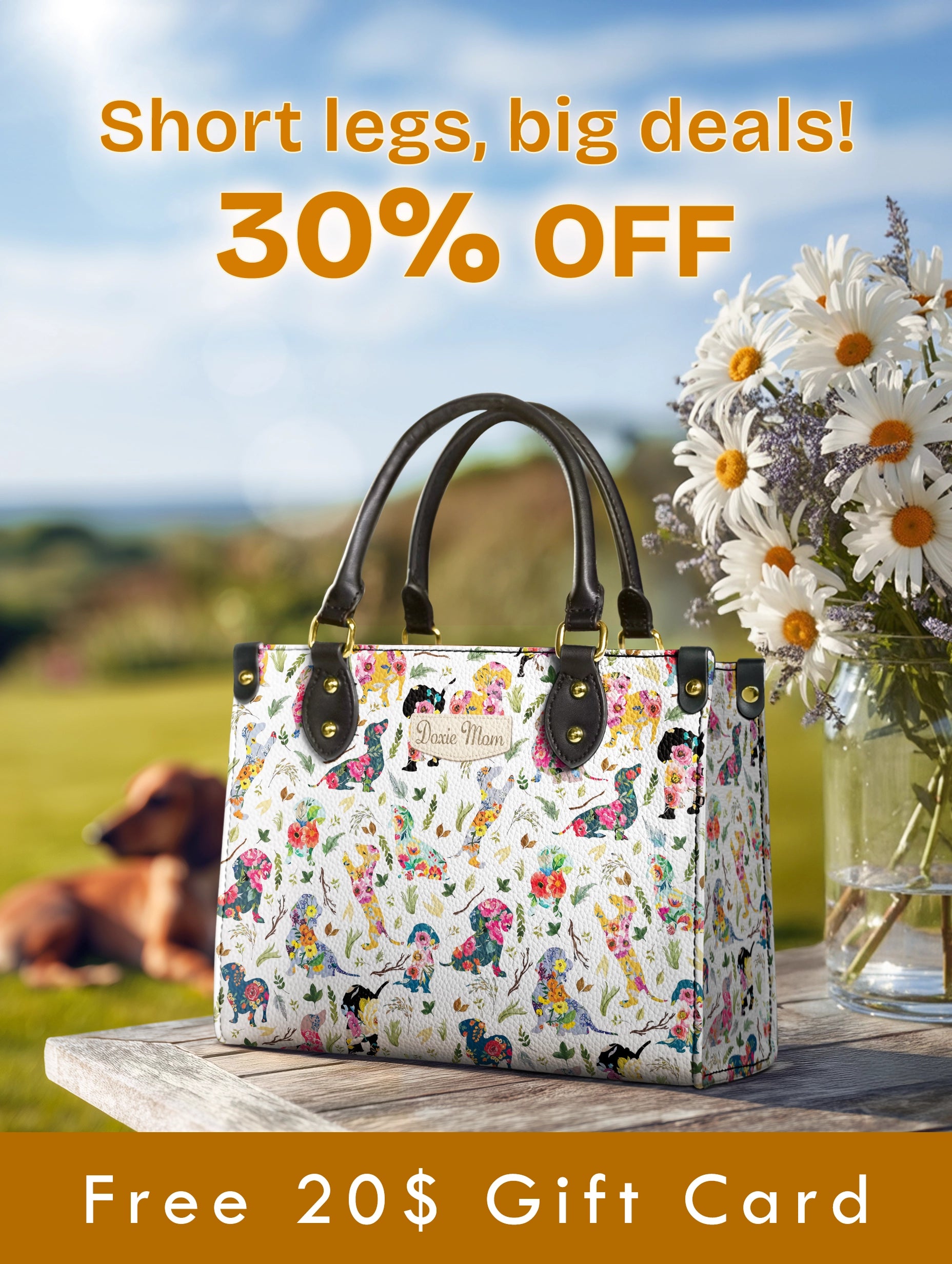 DachyCharm Floral Dachshund With Heart Personalized Leather Bag