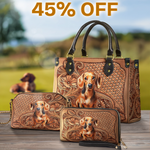 The leather bag offers generous space for your daily essentials, the wallet keeps your cards and cash neatly organized, and the crossbody gives you a lightweight, hands-free option for days on the go. Together, they create a stylish, practical, and joy-filled set — the ultimate tribute to your dachshund love.