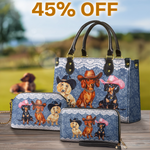 The DachyCharm Trio Bundle brings together our signature dachshund-pattern leather bag, a perfectly matching leather wallet, and a versatile leather crossbody — all crafted from premium leather that’s soft, durable, and color-fast to keep their beauty for years.