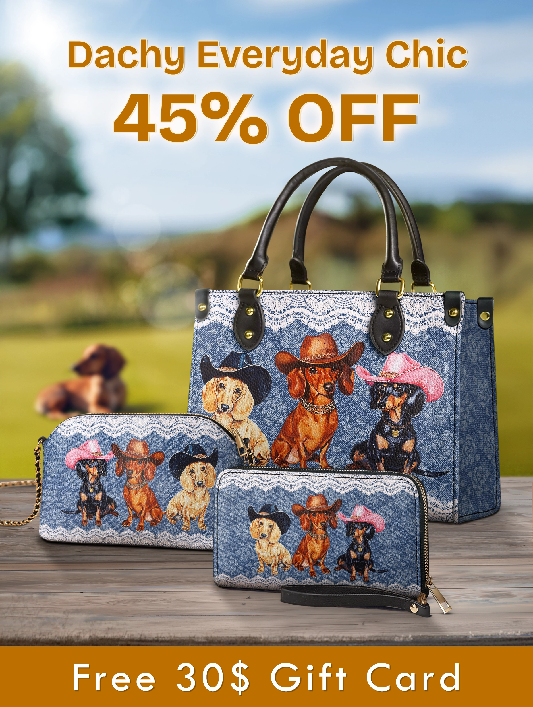 The leather bag offers generous space for your daily essentials, the wallet keeps your cards and cash neatly organized, and the crossbody gives you a lightweight, hands-free option for days on the go. Together, they create a stylish, practical, and joy-filled set — the ultimate tribute to your dachshund love.
