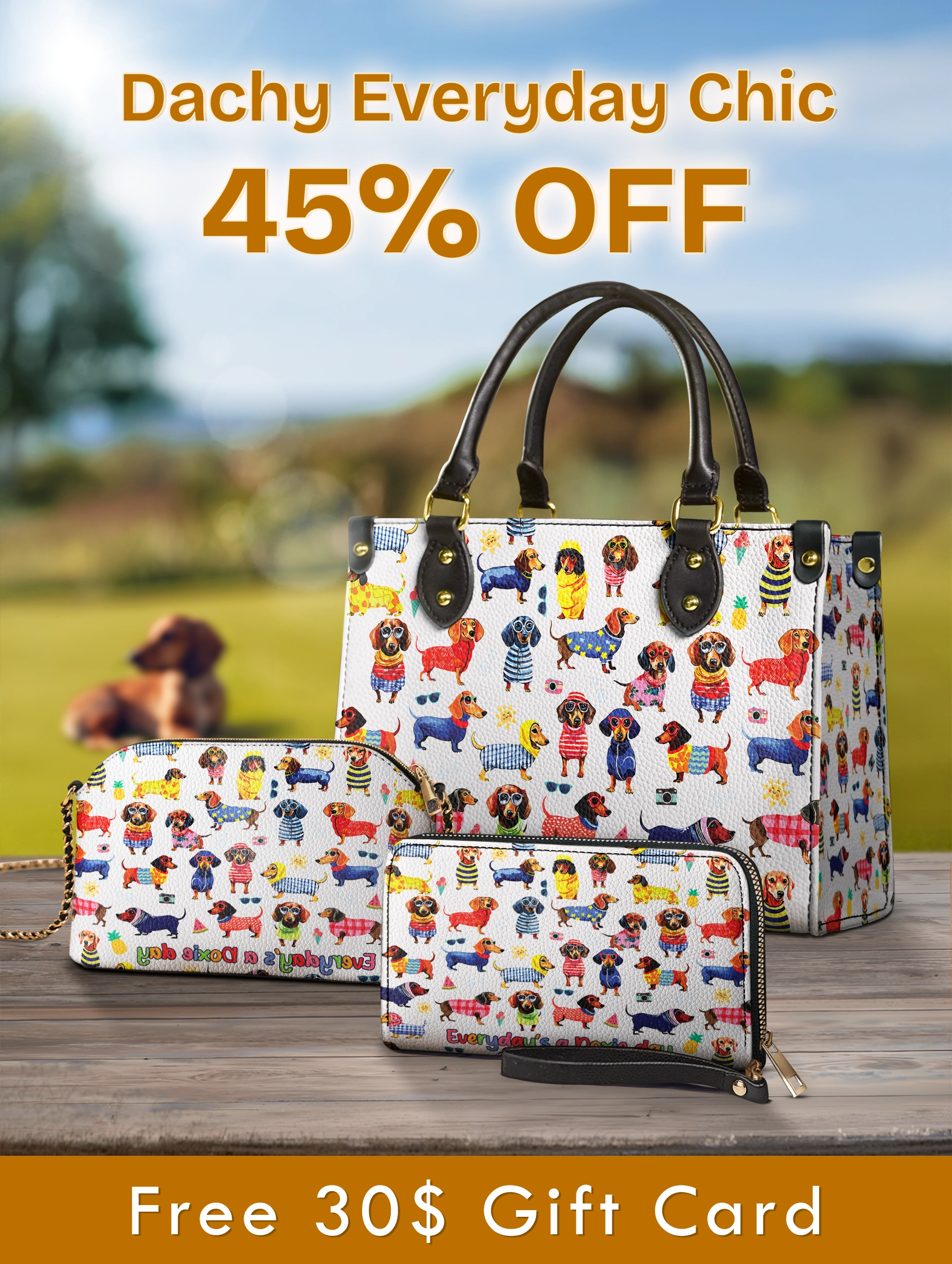 The leather bag offers generous space for your daily essentials, the wallet keeps your cards and cash neatly organized, and the crossbody gives you a lightweight, hands-free option for days on the go. Together, they create a stylish, practical, and joy-filled set — the ultimate tribute to your dachshund love.