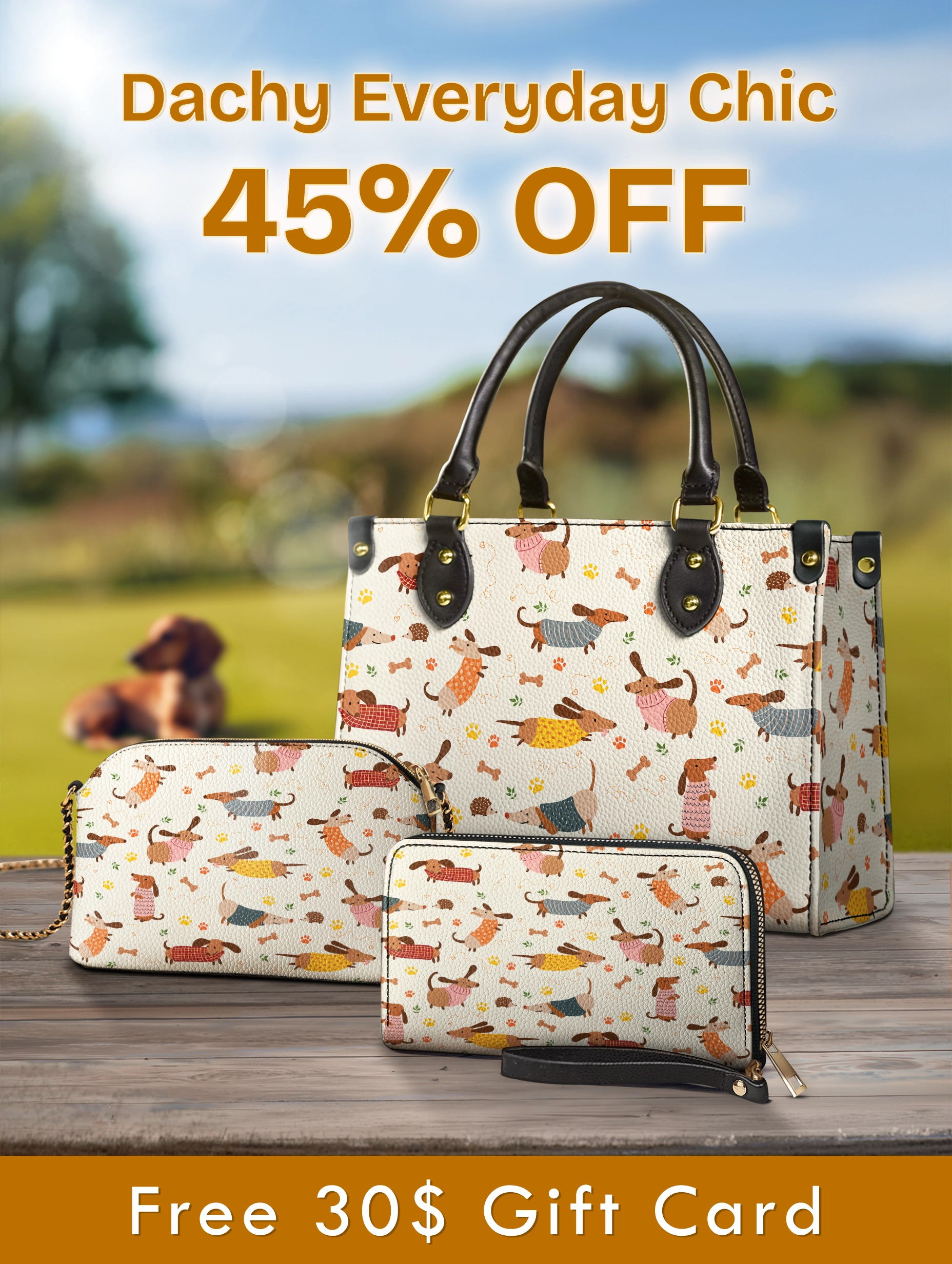 The leather bag offers generous space for your daily essentials, the wallet keeps your cards and cash neatly organized, and the crossbody gives you a lightweight, hands-free option for days on the go. Together, they create a stylish, practical, and joy-filled set — the ultimate tribute to your dachshund love.