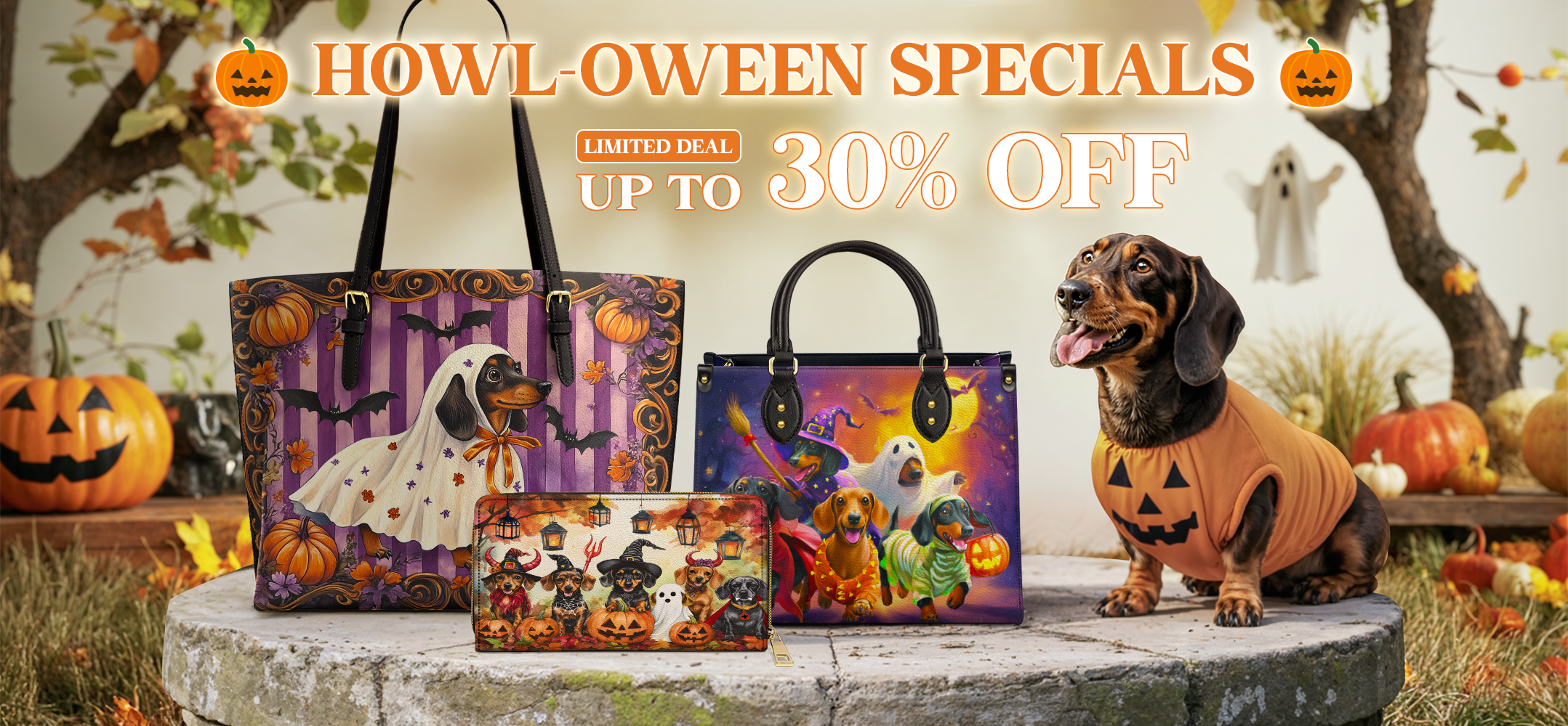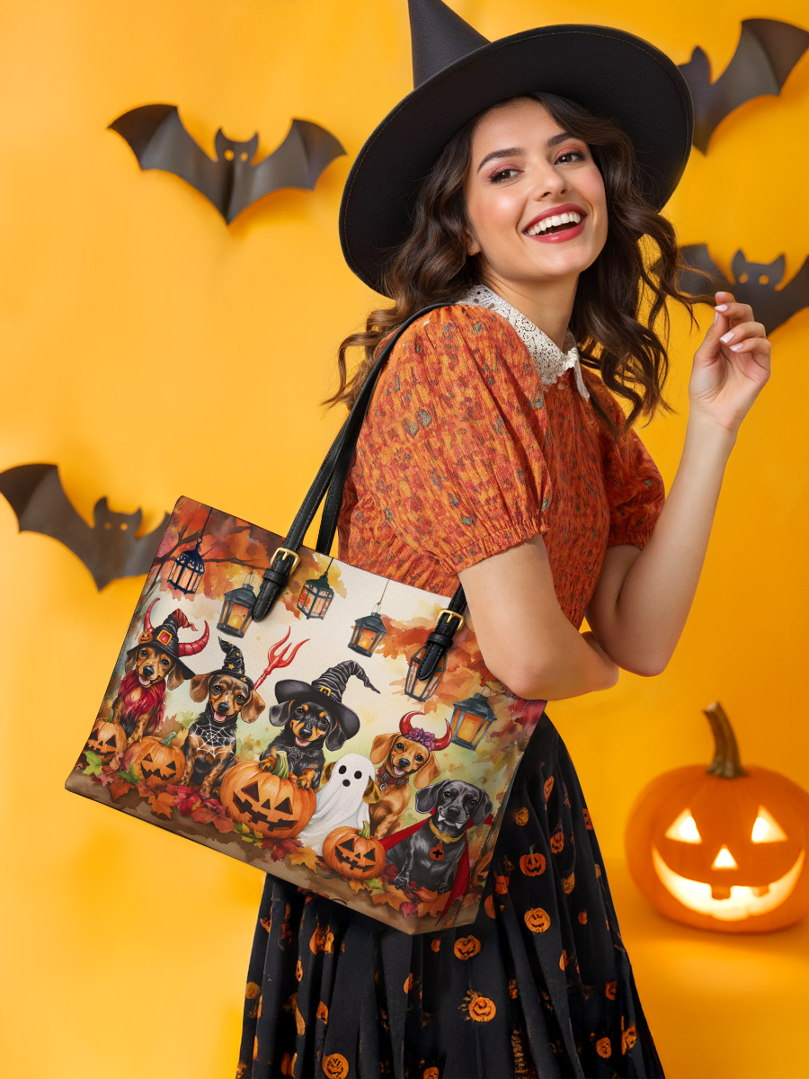 DachyCharm Spooky Pup Parade Leather Tote Bag