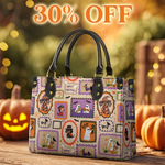 This playful leather bag features a festive patchwork of dachshunds dressed in their Halloween best — from little ghosts and witches to pumpkin pups and vampires. Framed like postage stamps and bordered with vibrant Halloween icons, it brings a nostalgic yet cheerful vibe to your autumn wardrobe.