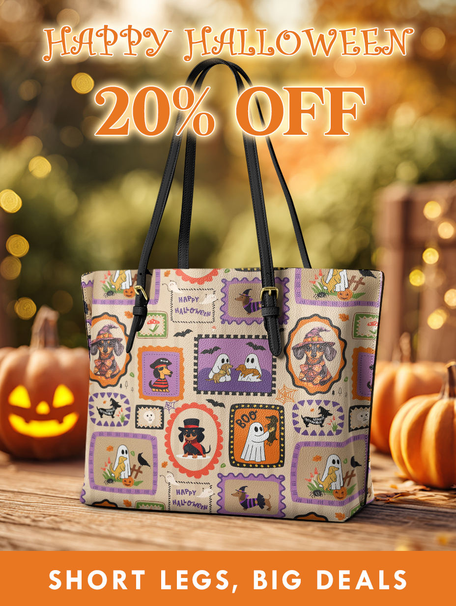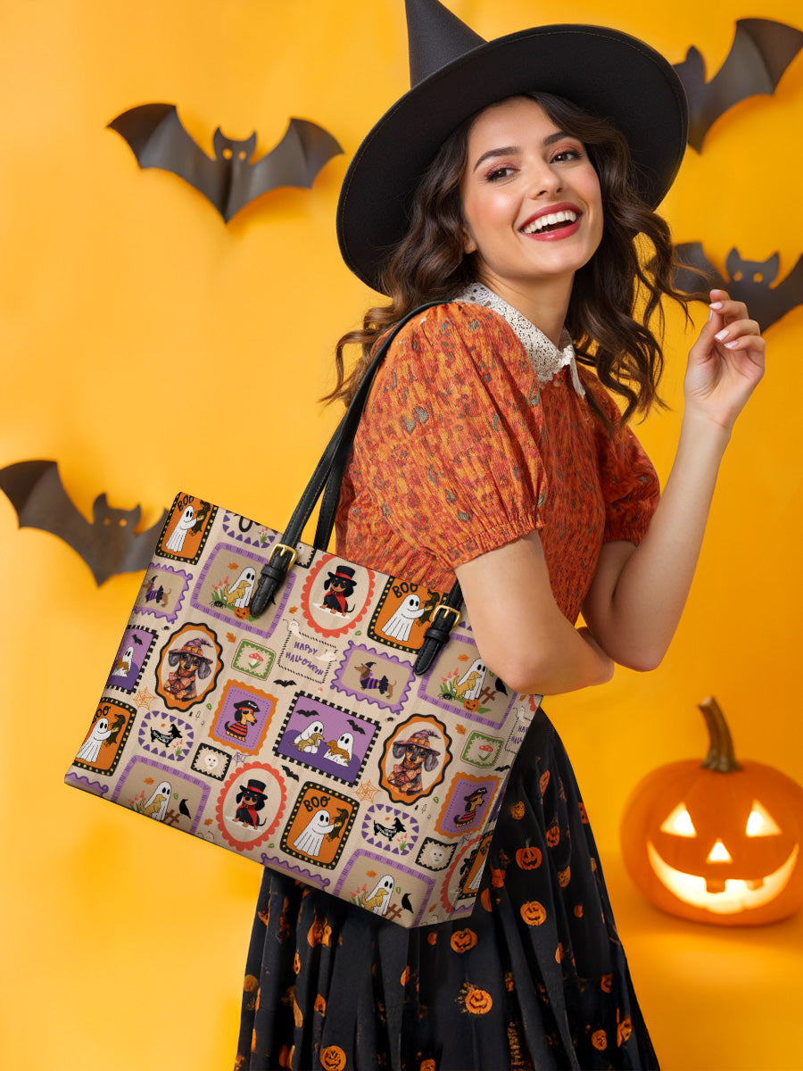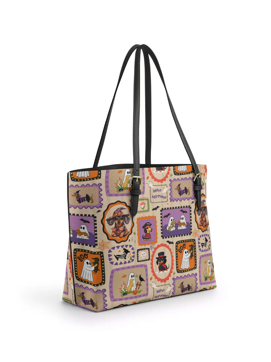 DachyCharm Spooky Pup Parade Leather Tote Bag