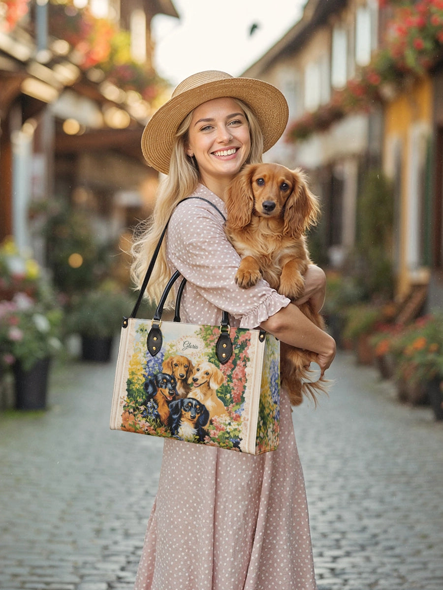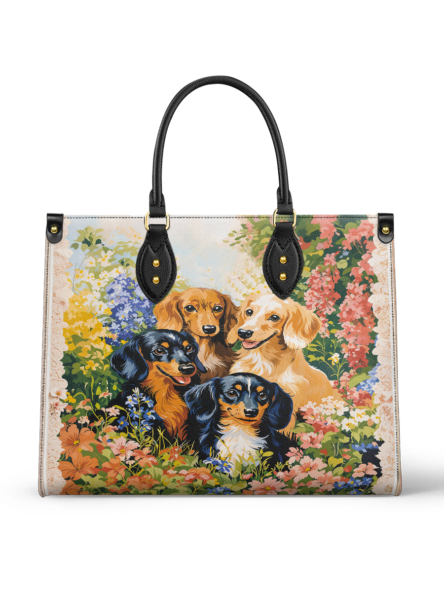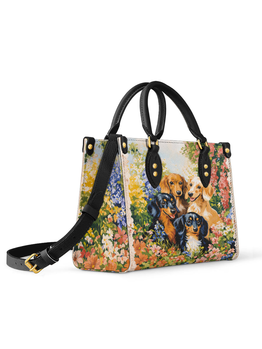 Ideal for multi-dog moms or those who cherish the playful spirit of the dachshund breed, this leather bag brings warmth and cheer to every day. It’s not just a design — it’s a garden full of love and wagging tails.