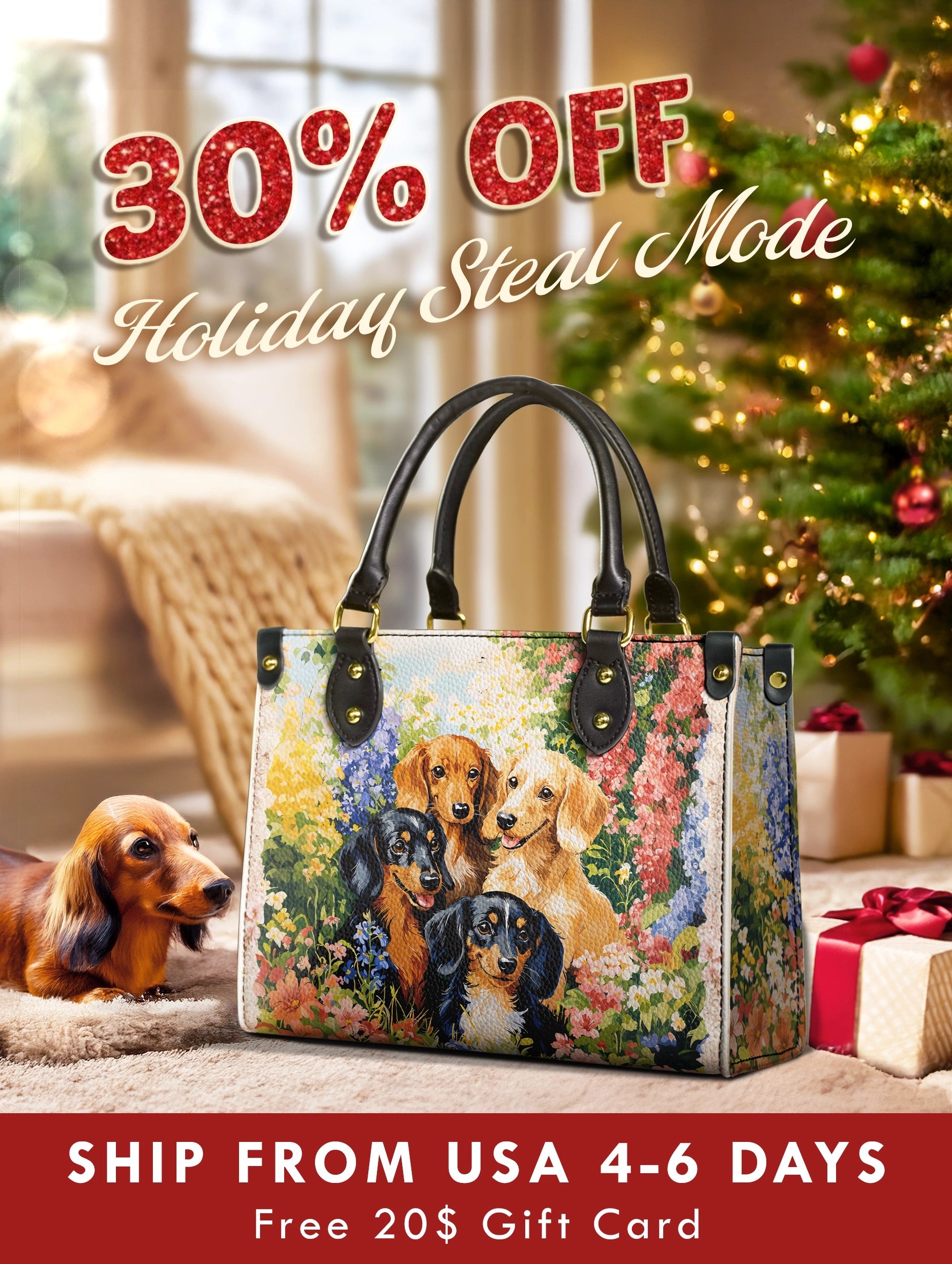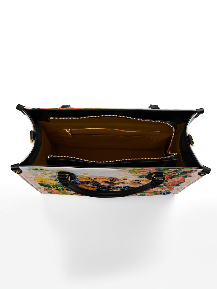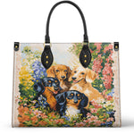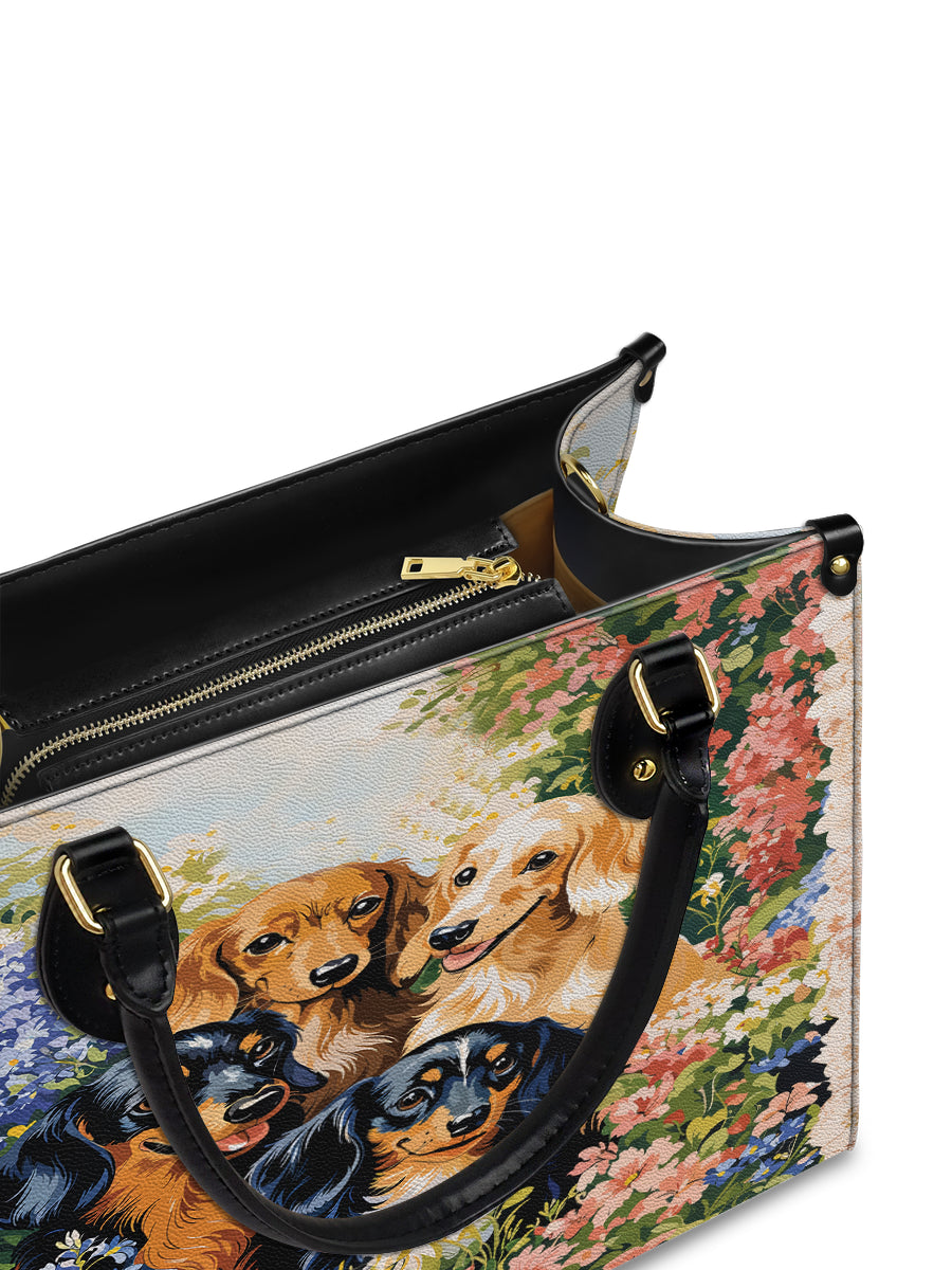 Ideal for multi-dog moms or those who cherish the playful spirit of the dachshund breed, this leather bag brings warmth and cheer to every day. It’s not just a design — it’s a garden full of love and wagging tails.