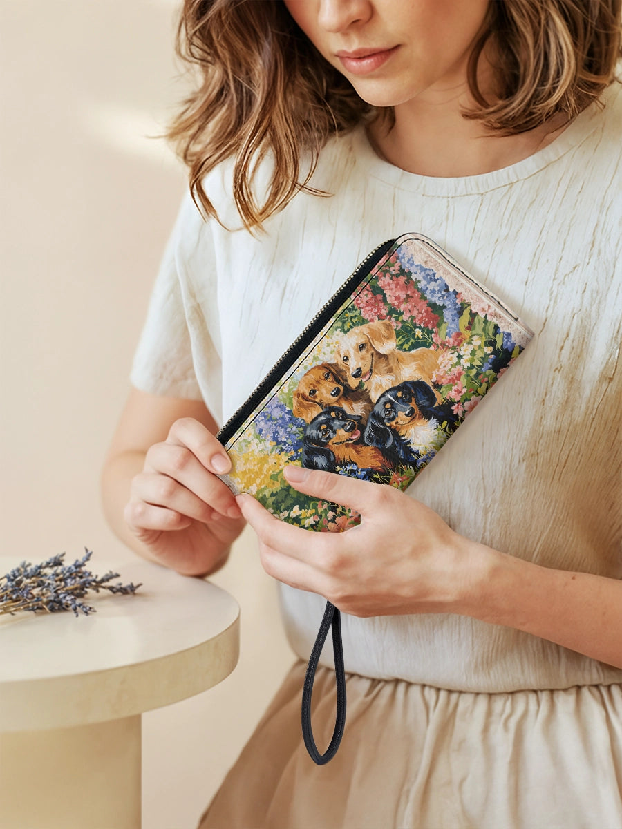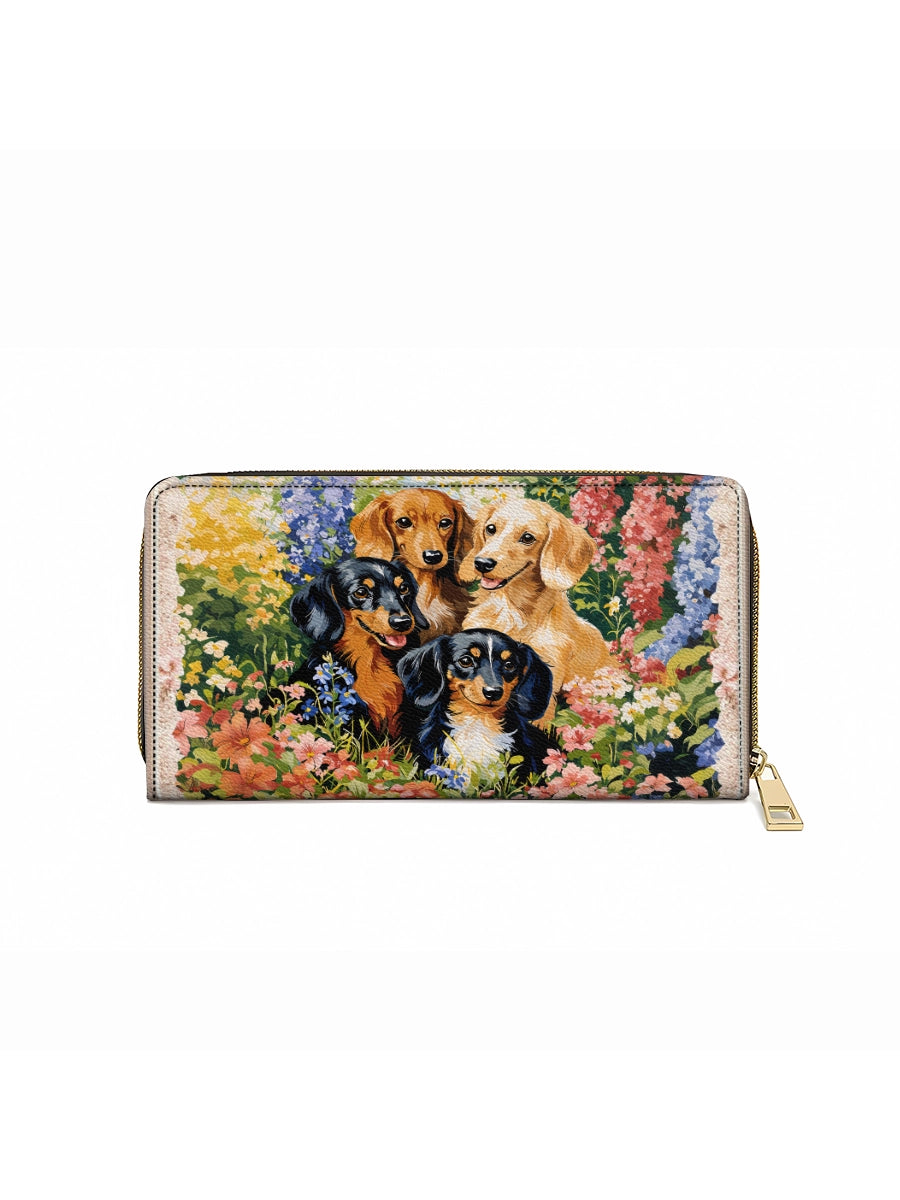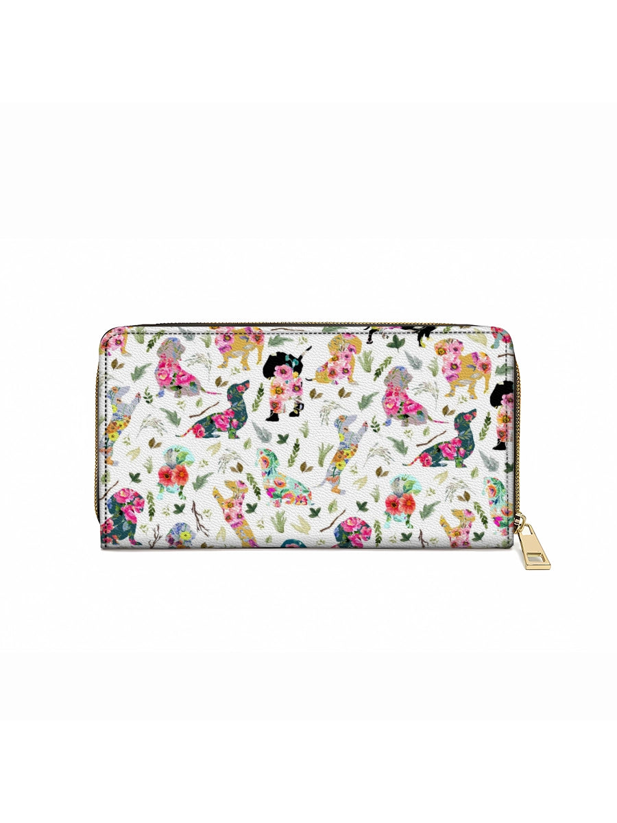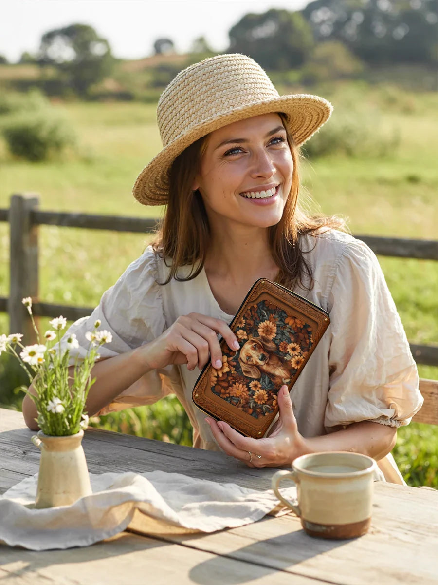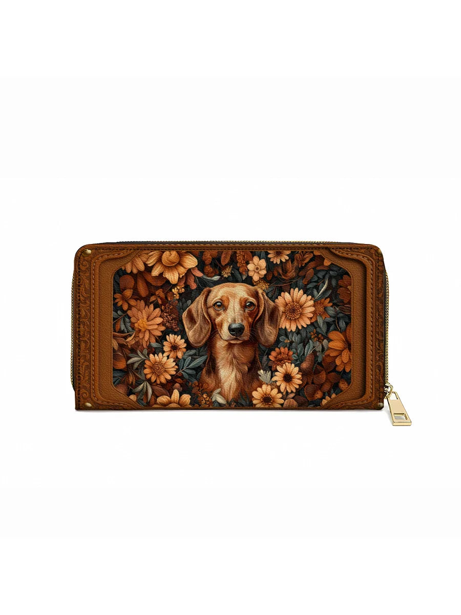 DachyCharm Floral Dachshund With Heart Leather Wallet