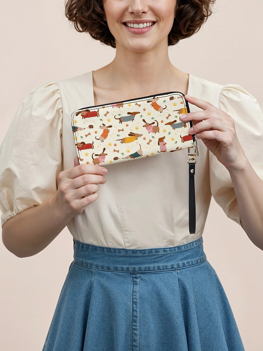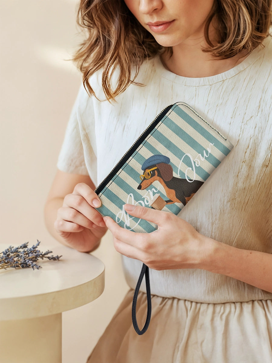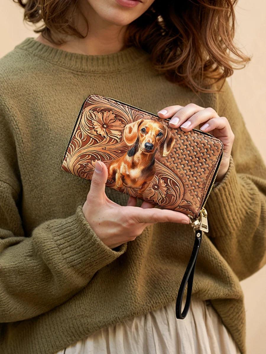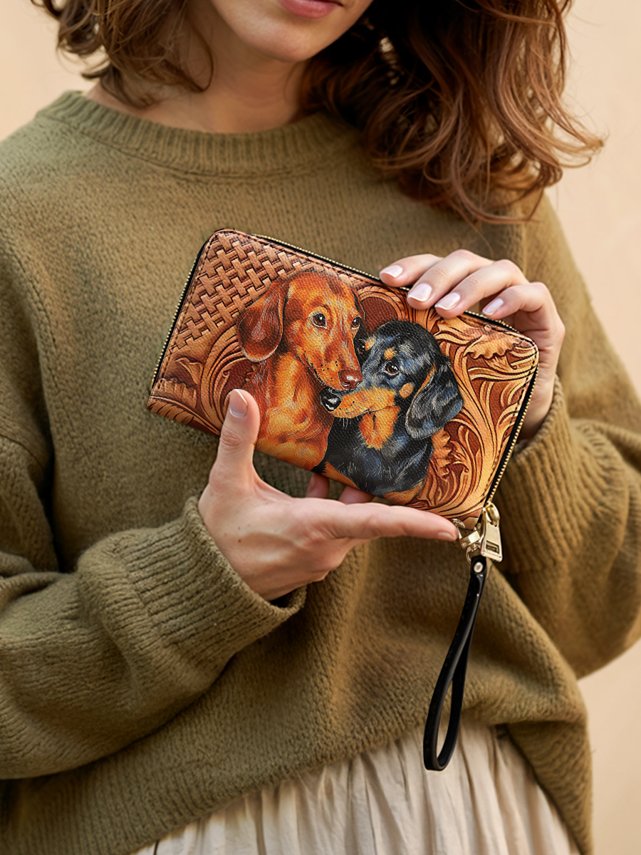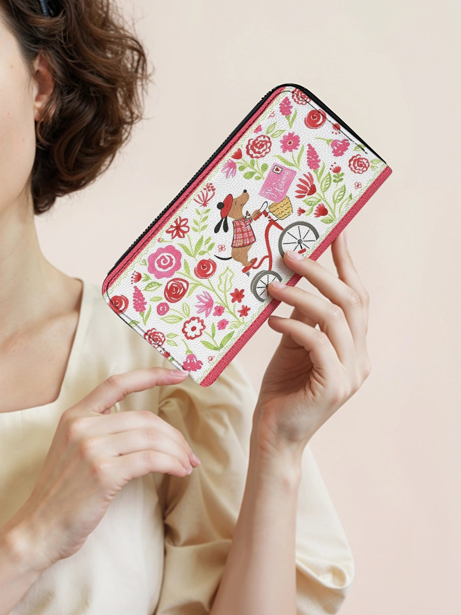 DachyCharm Floral Dachshund With Heart Leather Wallet