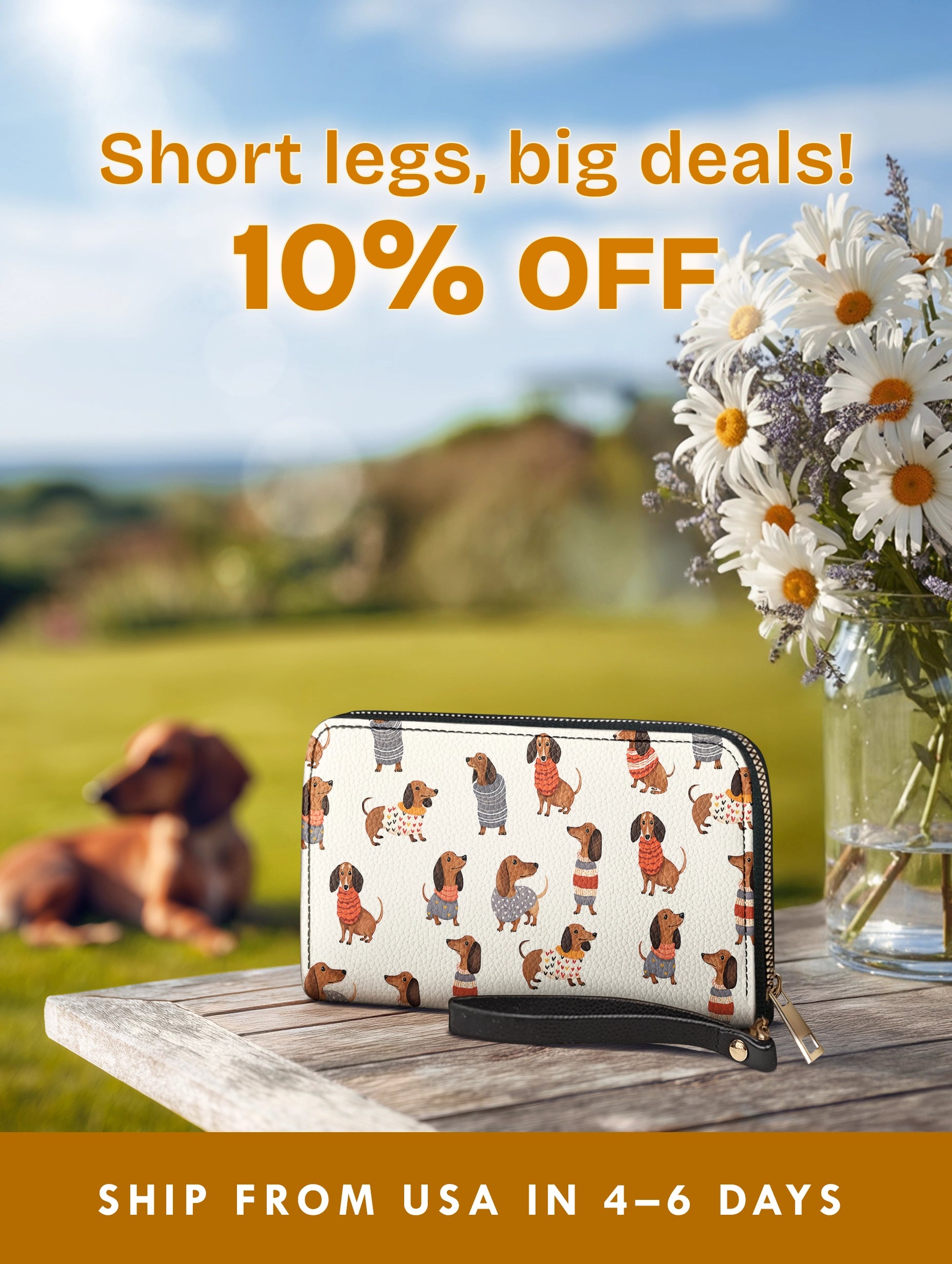 This whimsical leather clutch features a beloved dachshund motif nestled within a playful patterned design. With its soft neutrals and warm pops of color, and vintage-inspired elegance, it’s a piece that tells your story in quiet, joyful detail.