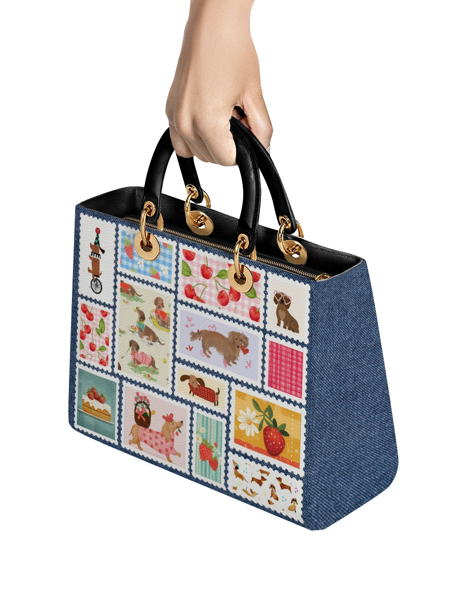 DachyCharm Berry Doxie Quilt Lady Leather Bag