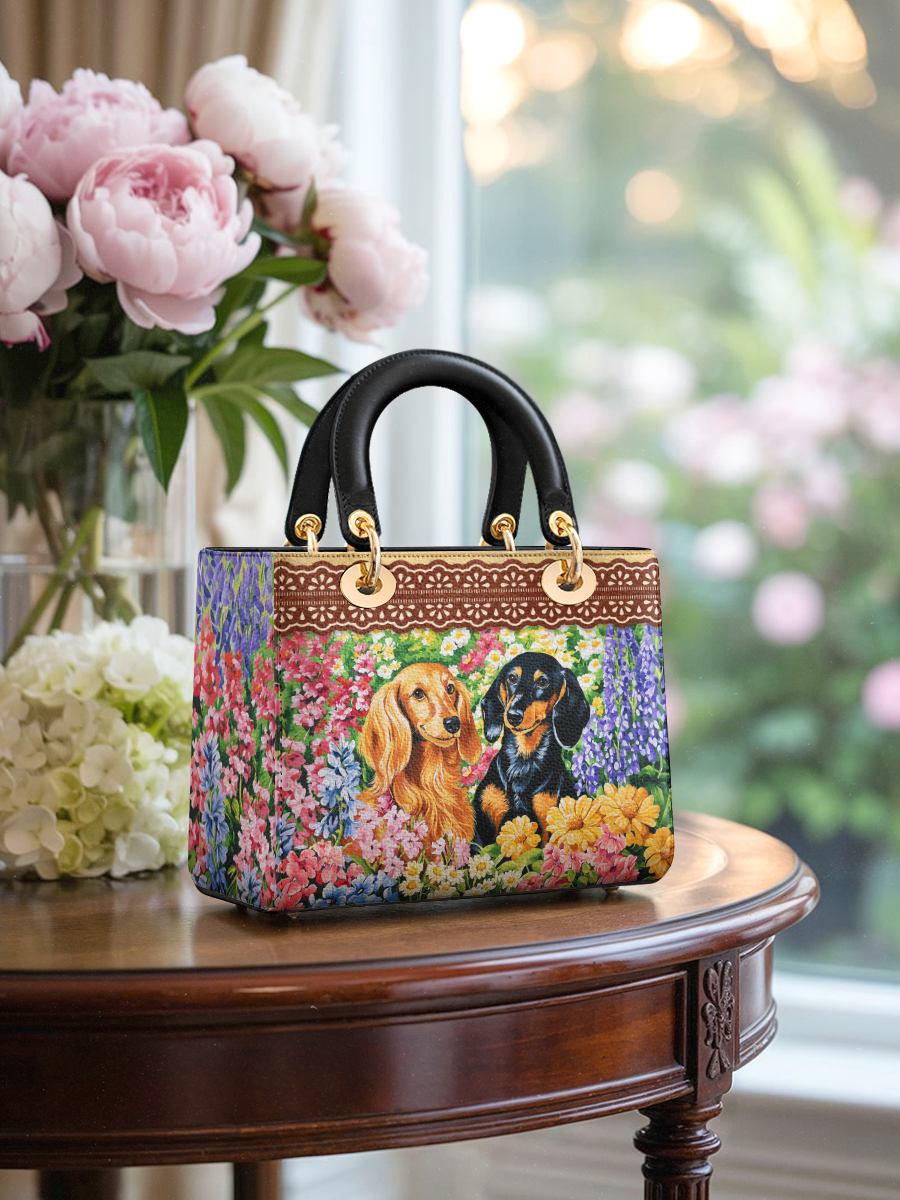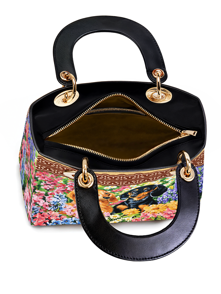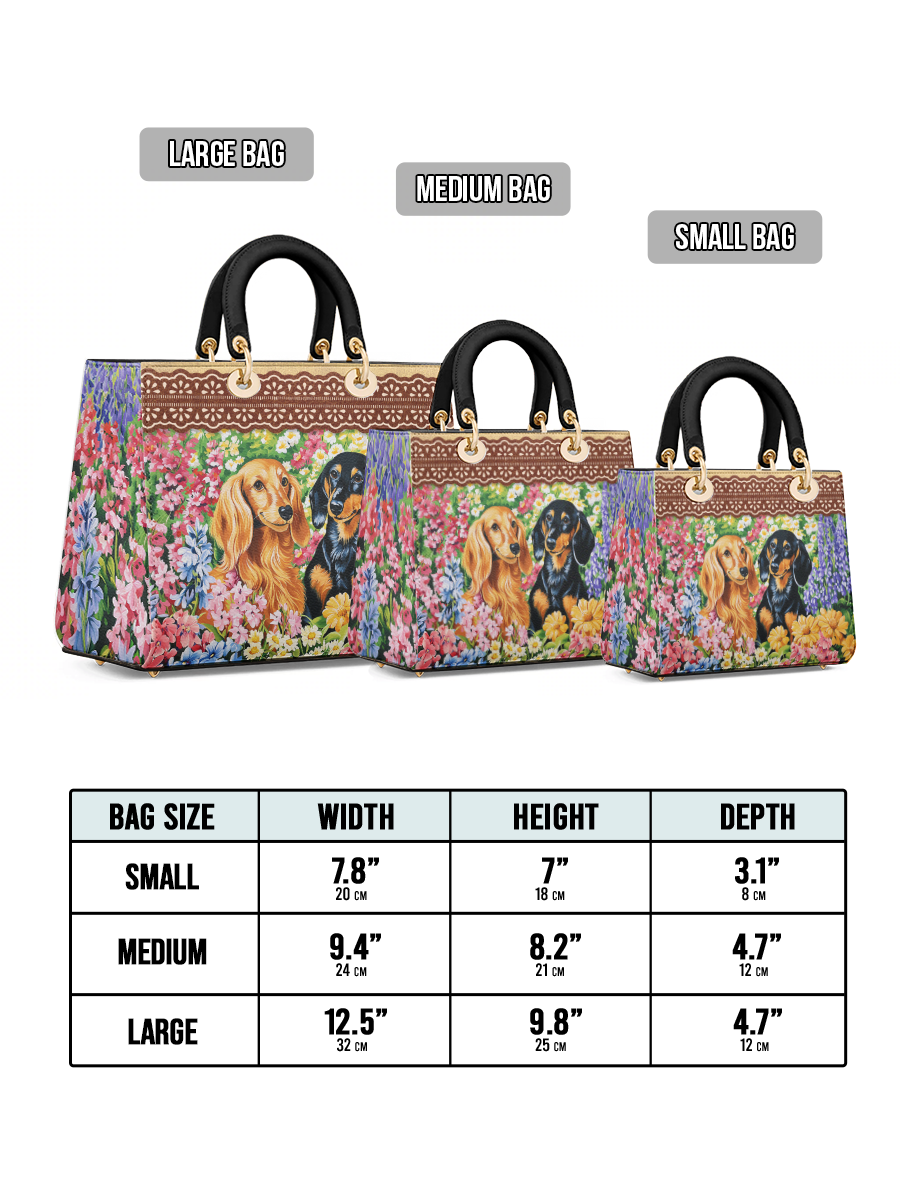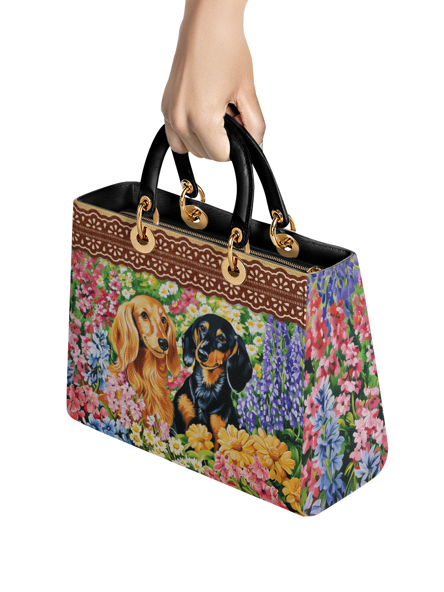 The Lady Leather Bag by DachyCharm brings timeless elegance to everyday moments. With its structured silhouette, sturdy top handles, and charming details, it’s the perfect blend of grace and personality — made for dachshund lovers who adore a touch of sophistication.
