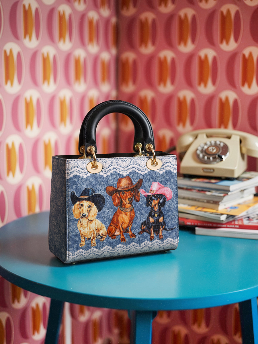 The Lady Leather Bag by DachyCharm brings timeless elegance to everyday moments. With its structured silhouette, sturdy top handles, and charming details, it’s the perfect blend of grace and personality — made for dachshund lovers who adore a touch of sophistication.