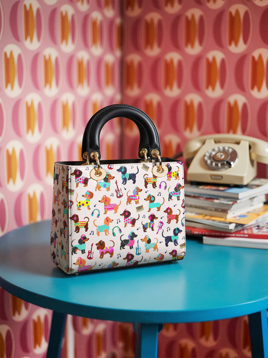 The Lady Leather Bag by DachyCharm brings timeless elegance to everyday moments. With its structured silhouette, sturdy top handles, and charming details, it’s the perfect blend of grace and personality — made for dachshund lovers who adore a touch of sophistication.