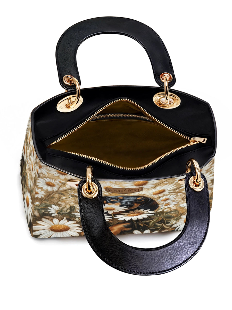 The Lady Leather Bag by DachyCharm brings timeless elegance to everyday moments. With its structured silhouette, sturdy top handles, and charming details, it’s the perfect blend of grace and personality — made for dachshund lovers who adore a touch of sophistication.