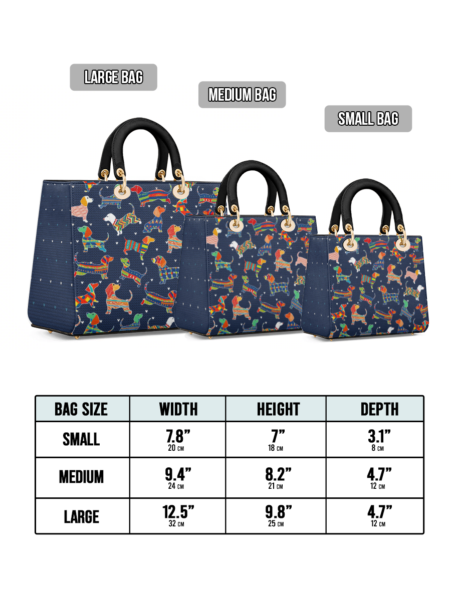 The Lady Leather Bag by DachyCharm brings timeless elegance to everyday moments. With its structured silhouette, sturdy top handles, and charming details, it’s the perfect blend of grace and personality — made for dachshund lovers who adore a touch of sophistication.