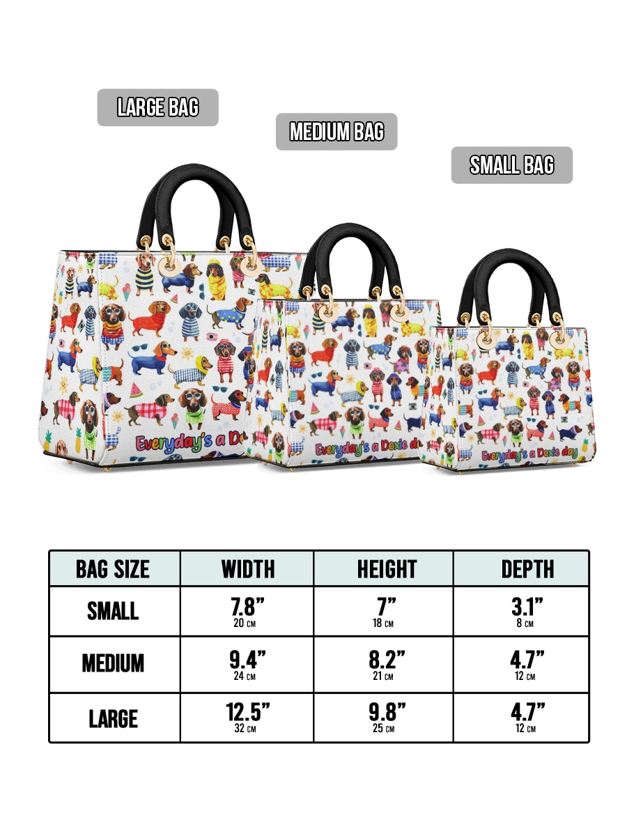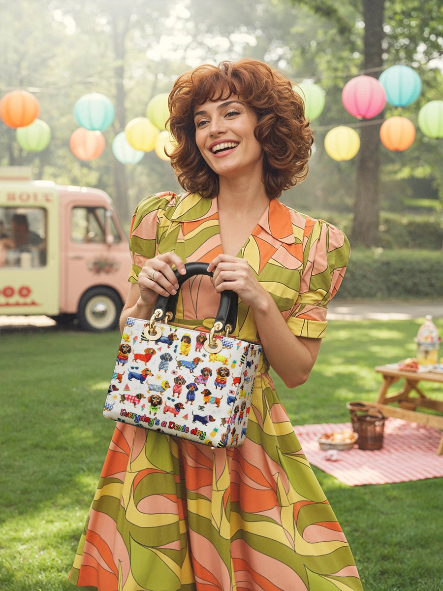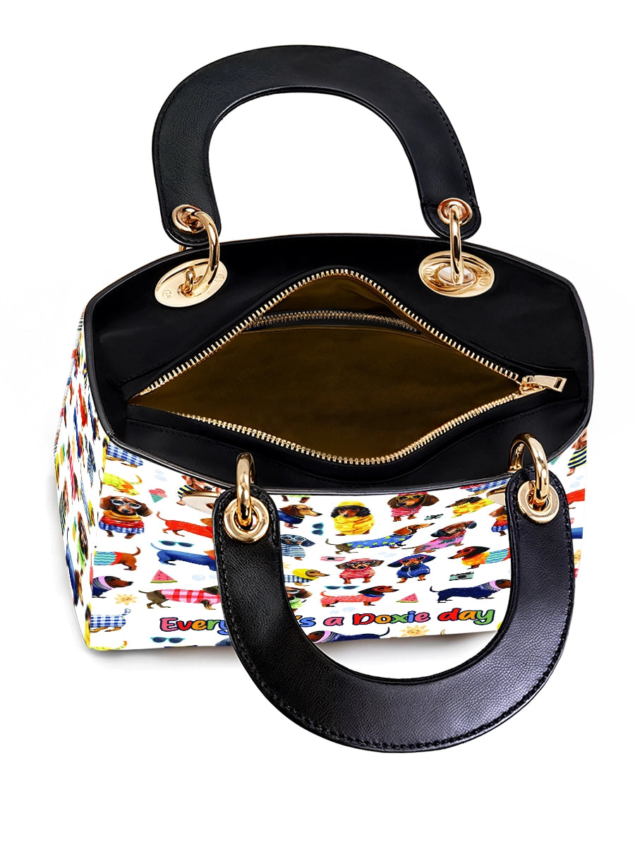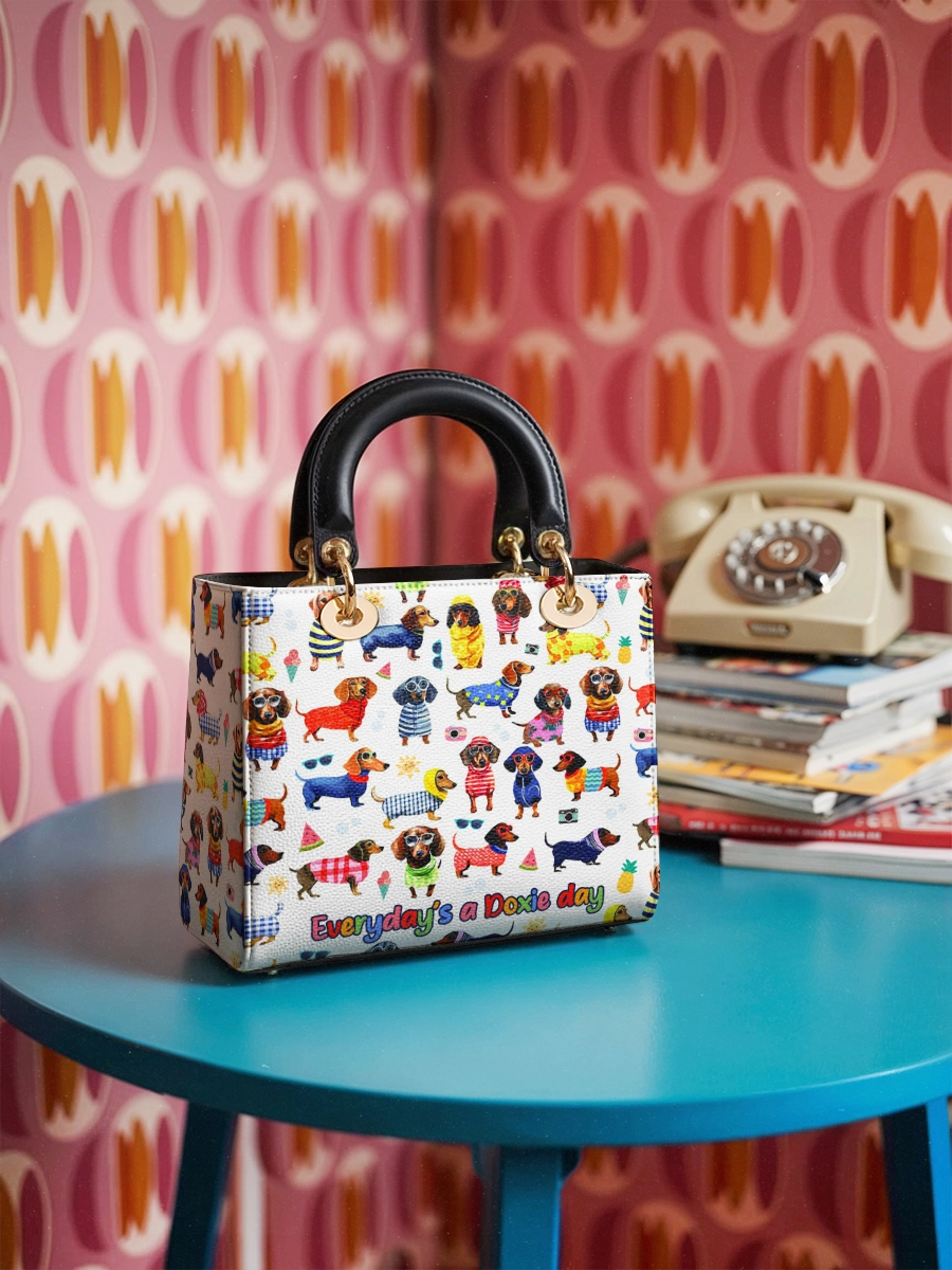 The Lady Leather Bag by DachyCharm brings timeless elegance to everyday moments. With its structured silhouette, sturdy top handles, and charming details, it’s the perfect blend of grace and personality — made for dachshund lovers who adore a touch of sophistication.