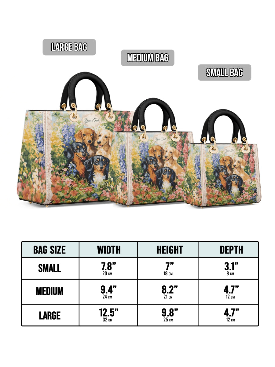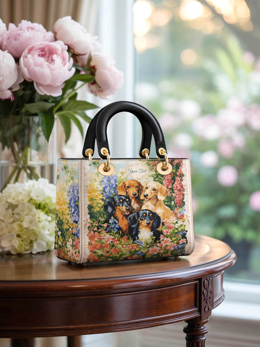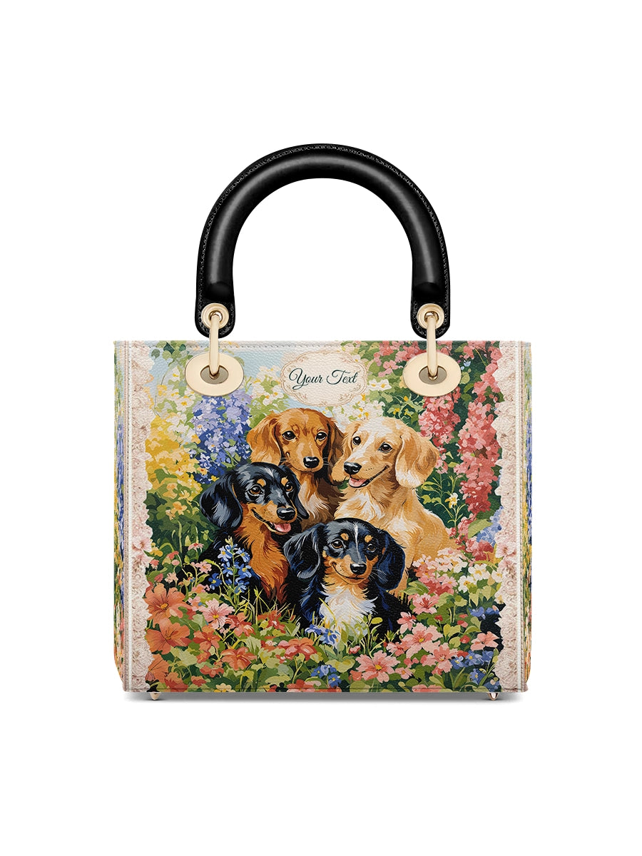 The Lady Leather Bag by DachyCharm brings timeless elegance to everyday moments. With its structured silhouette, sturdy top handles, and charming details, it’s the perfect blend of grace and personality — made for dachshund lovers who adore a touch of sophistication.