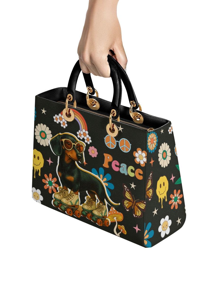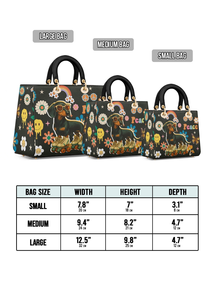The Lady Leather Bag by DachyCharm brings timeless elegance to everyday moments. With its structured silhouette, sturdy top handles, and charming details, it’s the perfect blend of grace and personality — made for dachshund lovers who adore a touch of sophistication.