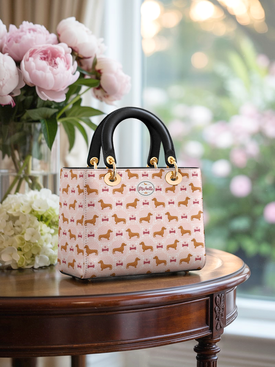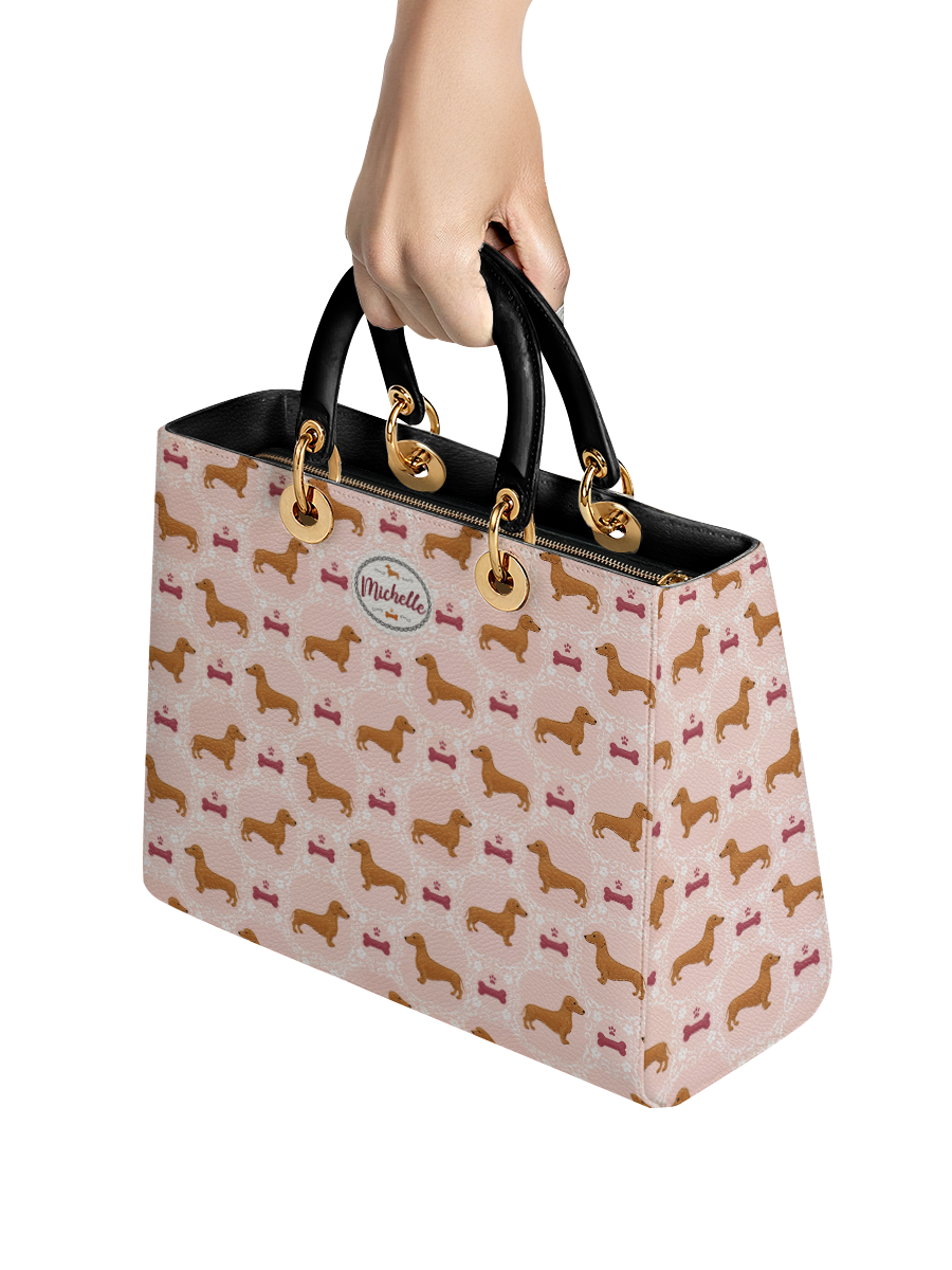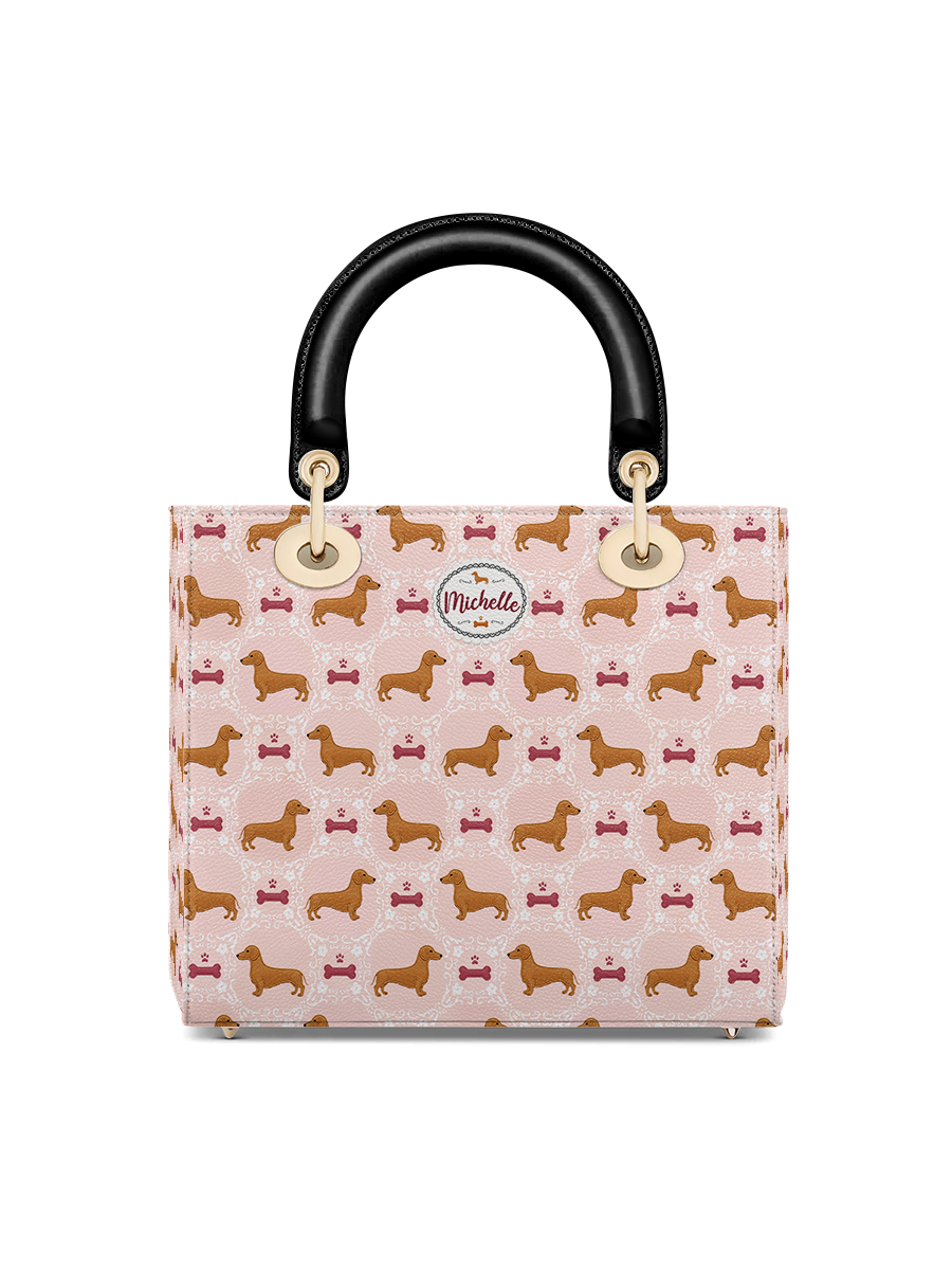 The Lady Leather Bag by DachyCharm brings timeless elegance to everyday moments. With its structured silhouette, sturdy top handles, and charming details, it’s the perfect blend of grace and personality — made for dachshund lovers who adore a touch of sophistication.