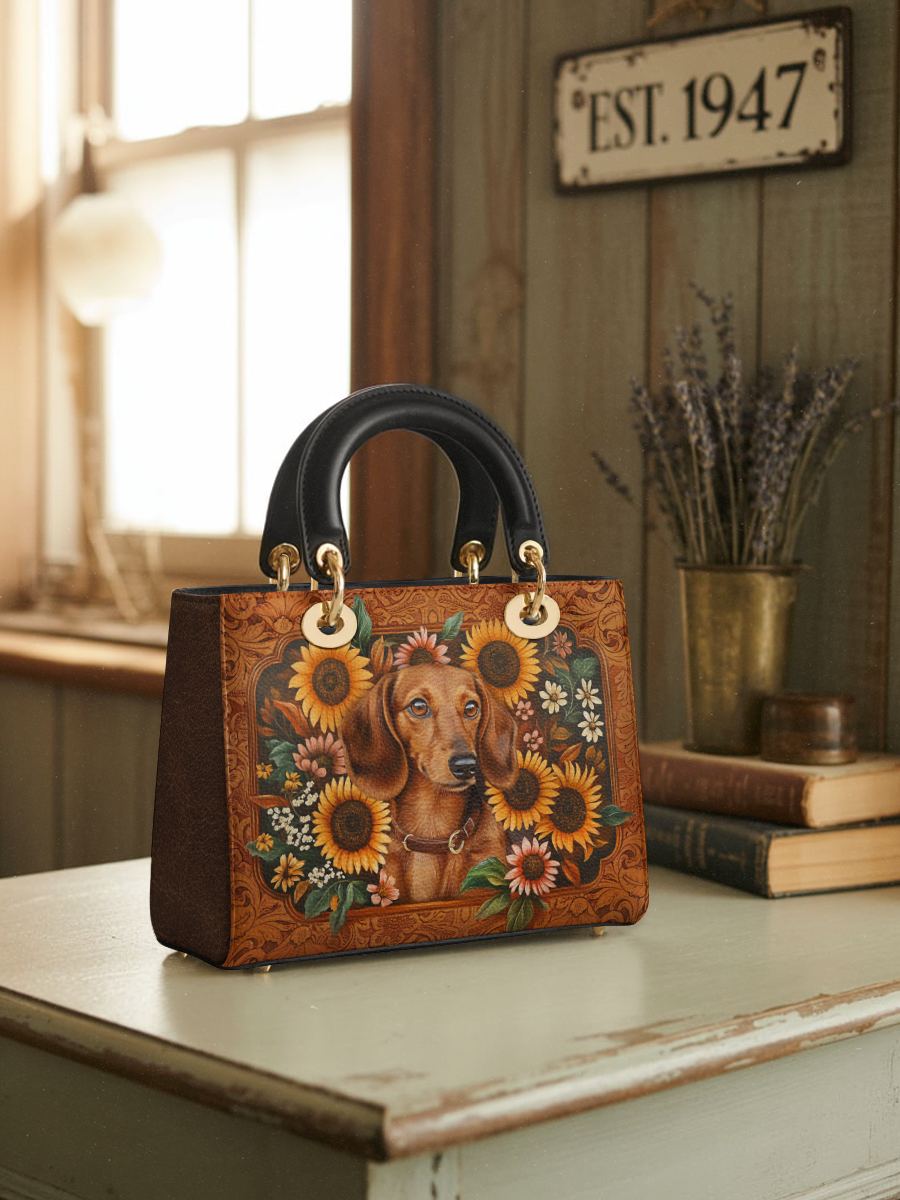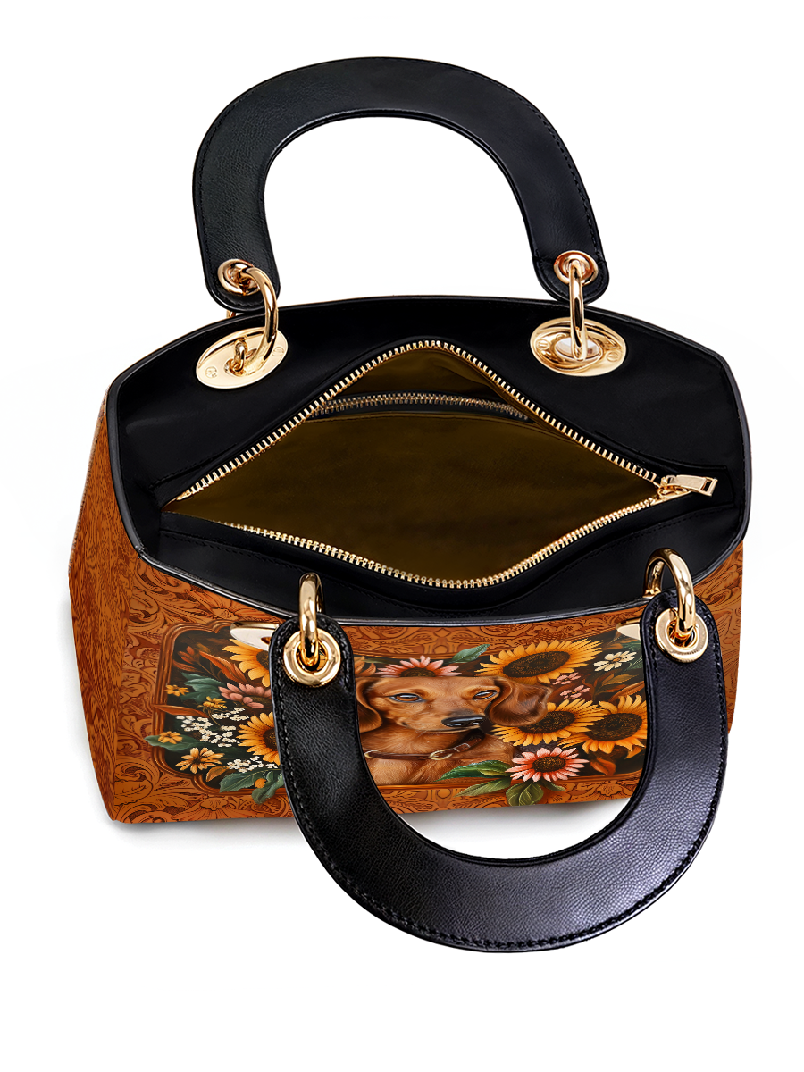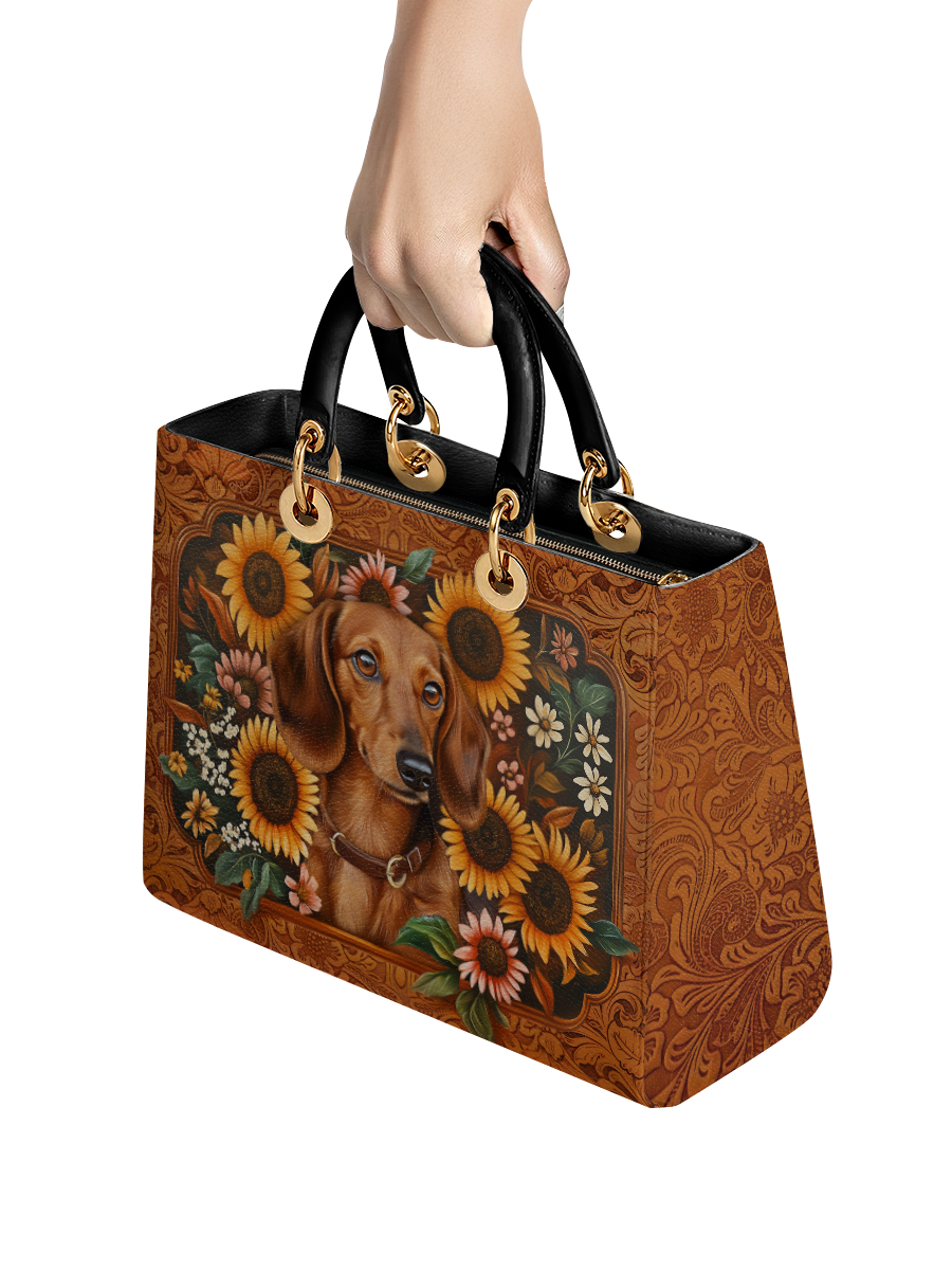 The Lady Leather Bag by DachyCharm brings timeless elegance to everyday moments. With its structured silhouette, sturdy top handles, and charming details, it’s the perfect blend of grace and personality — made for dachshund lovers who adore a touch of sophistication.