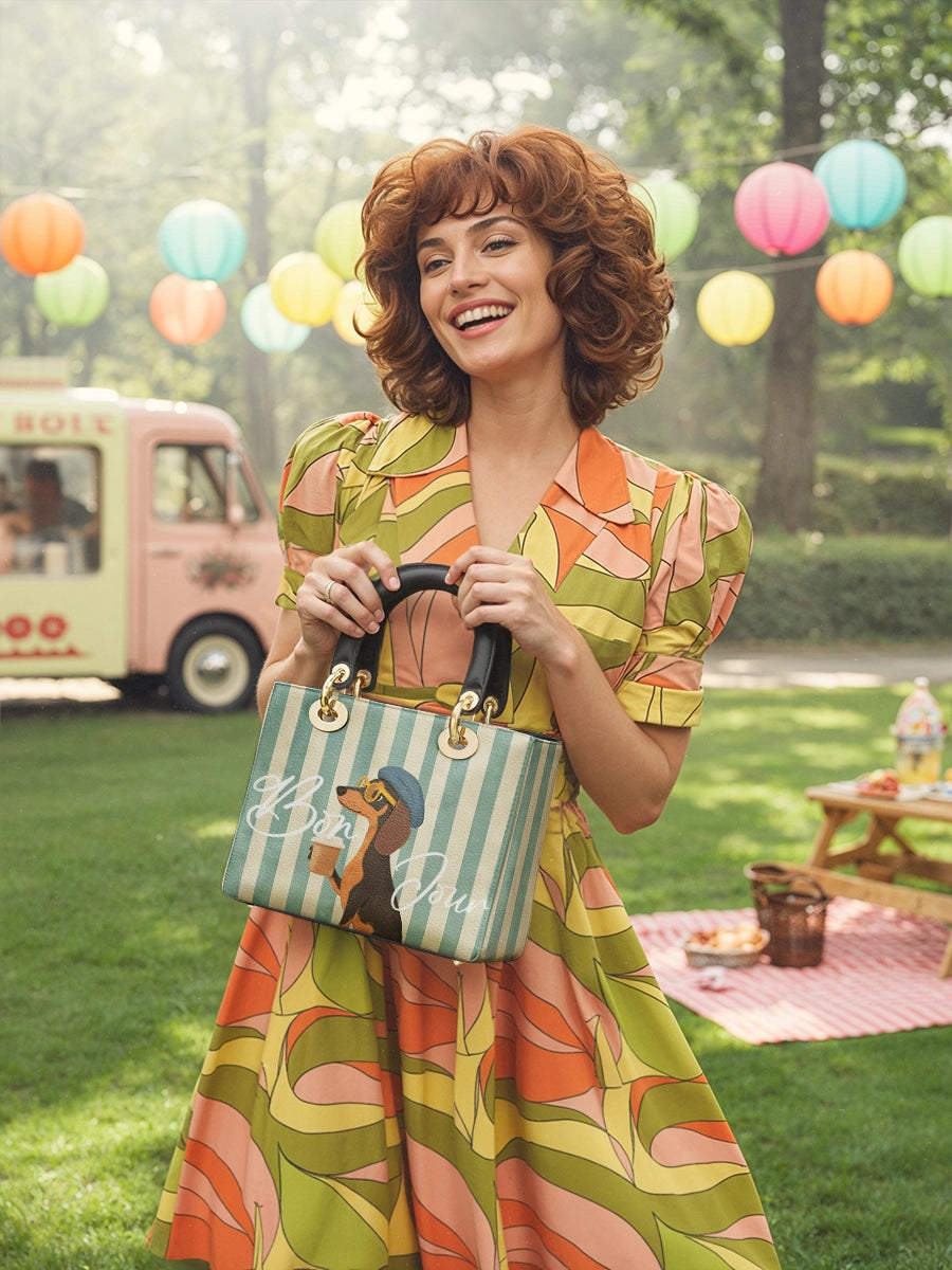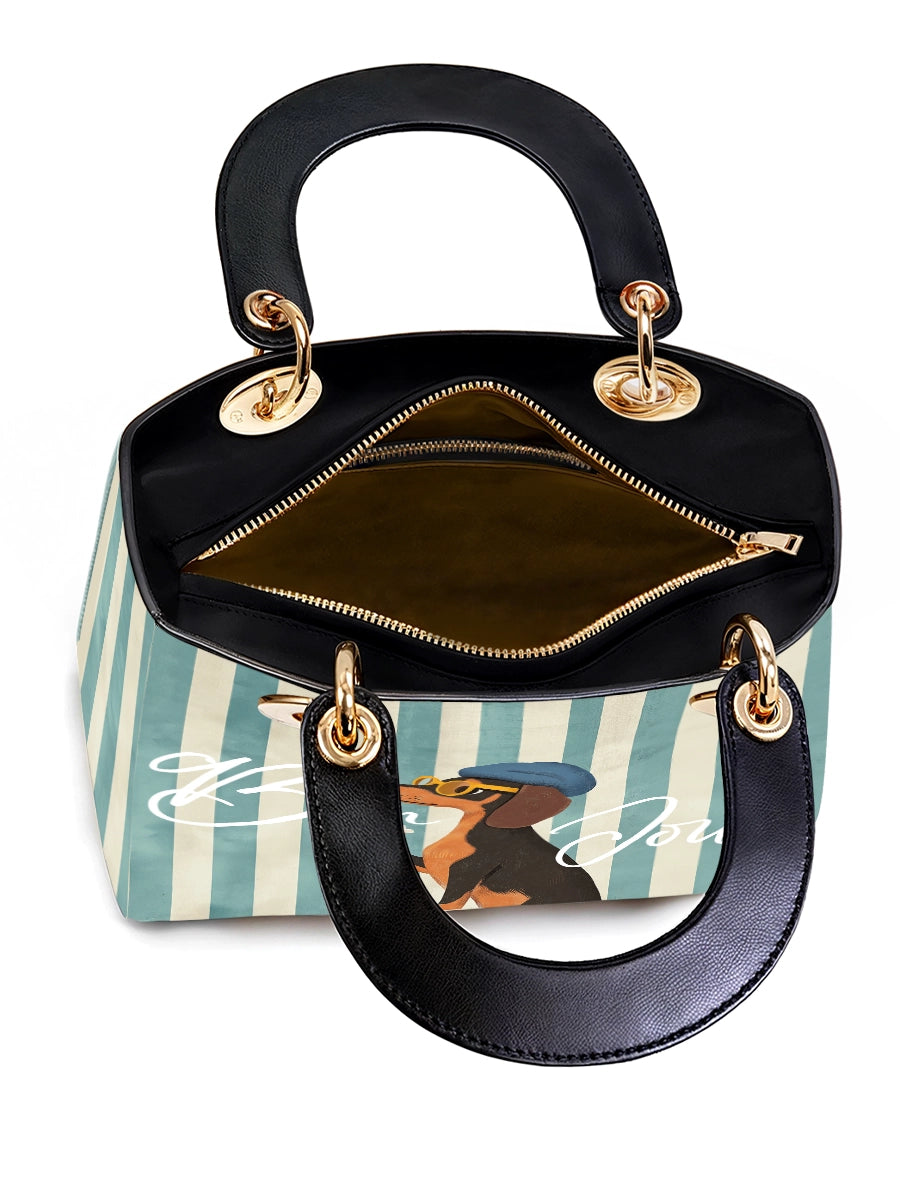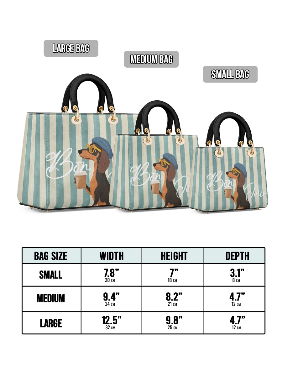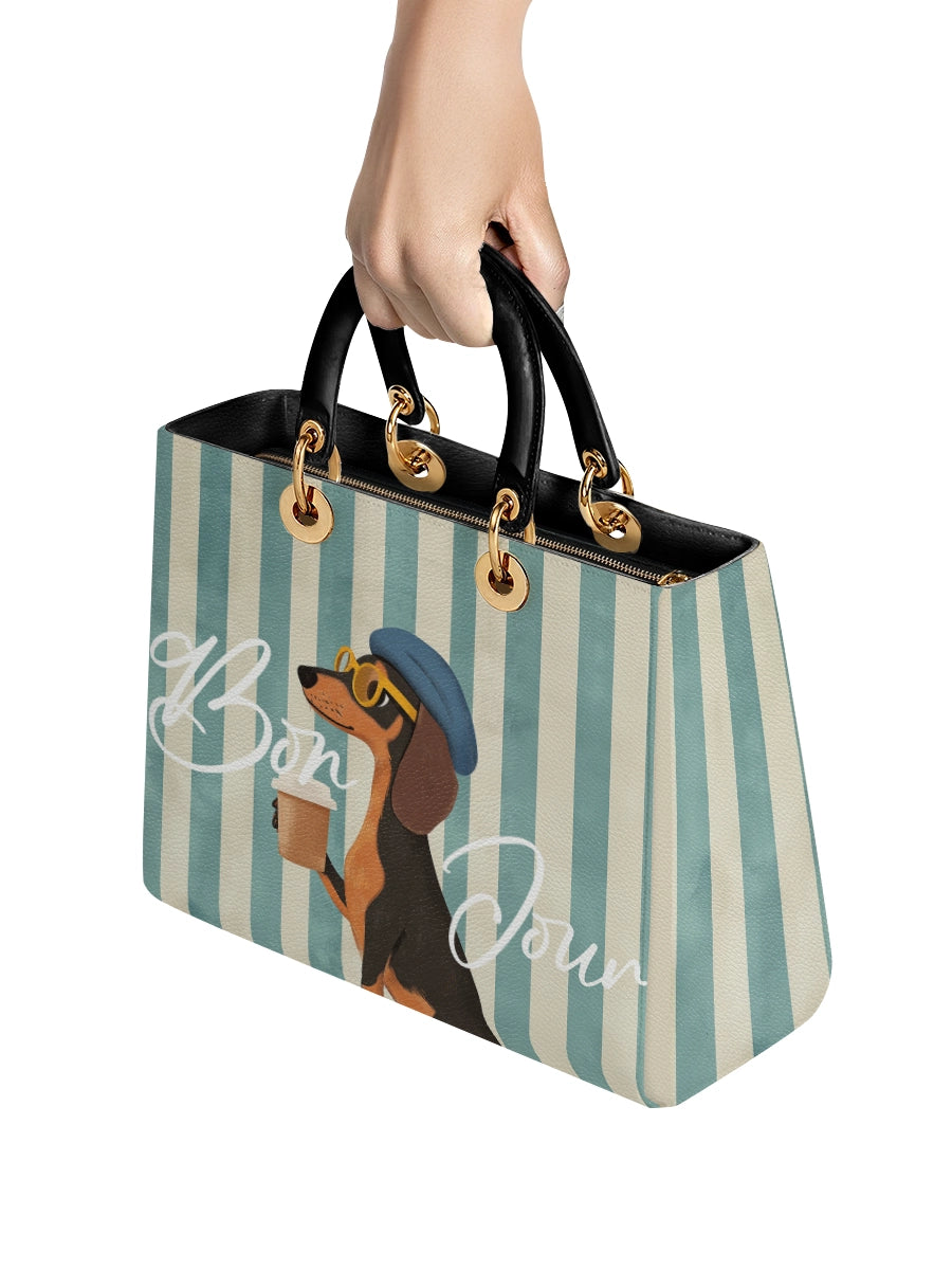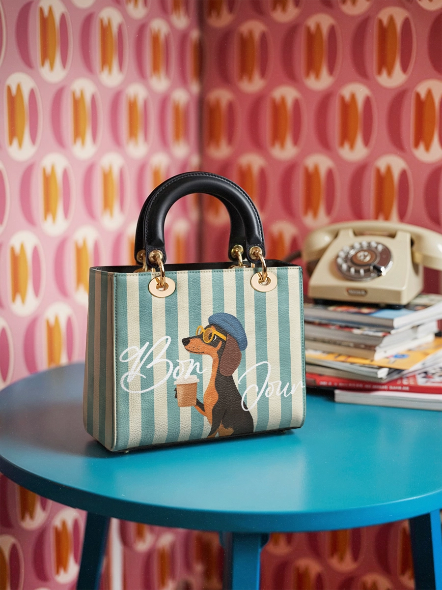 The Lady Leather Bag by DachyCharm brings timeless elegance to everyday moments. With its structured silhouette, sturdy top handles, and charming details, it’s the perfect blend of grace and personality — made for dachshund lovers who adore a touch of sophistication.
