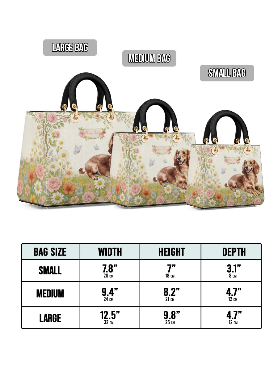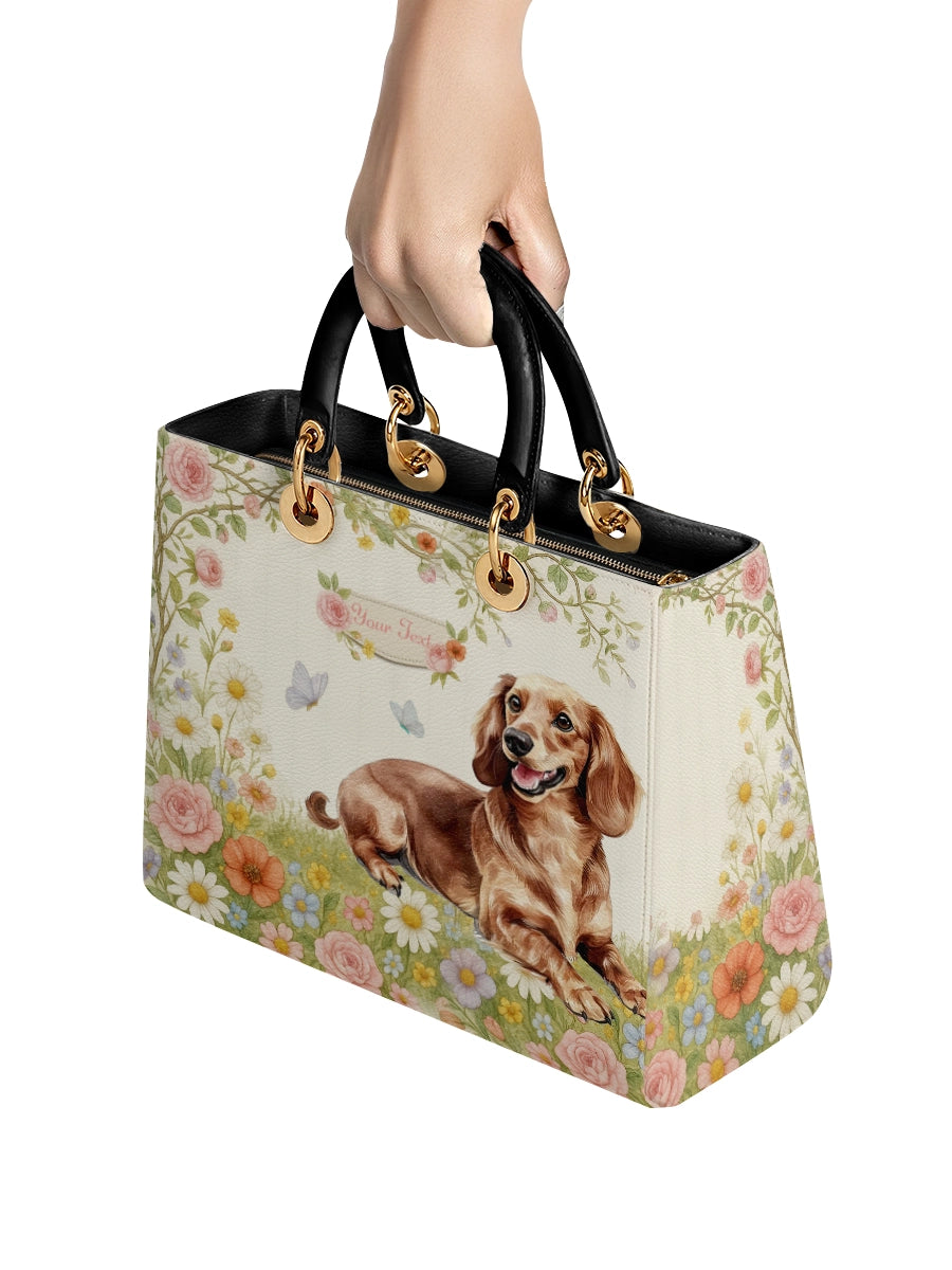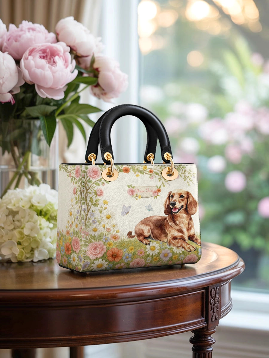 The Lady Leather Bag by DachyCharm brings timeless elegance to everyday moments. With its structured silhouette, sturdy top handles, and charming details, it’s the perfect blend of grace and personality — made for dachshund lovers who adore a touch of sophistication.