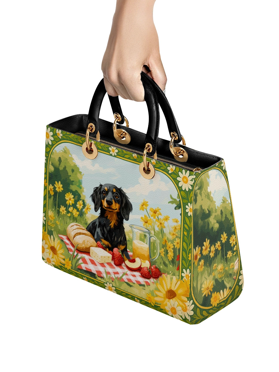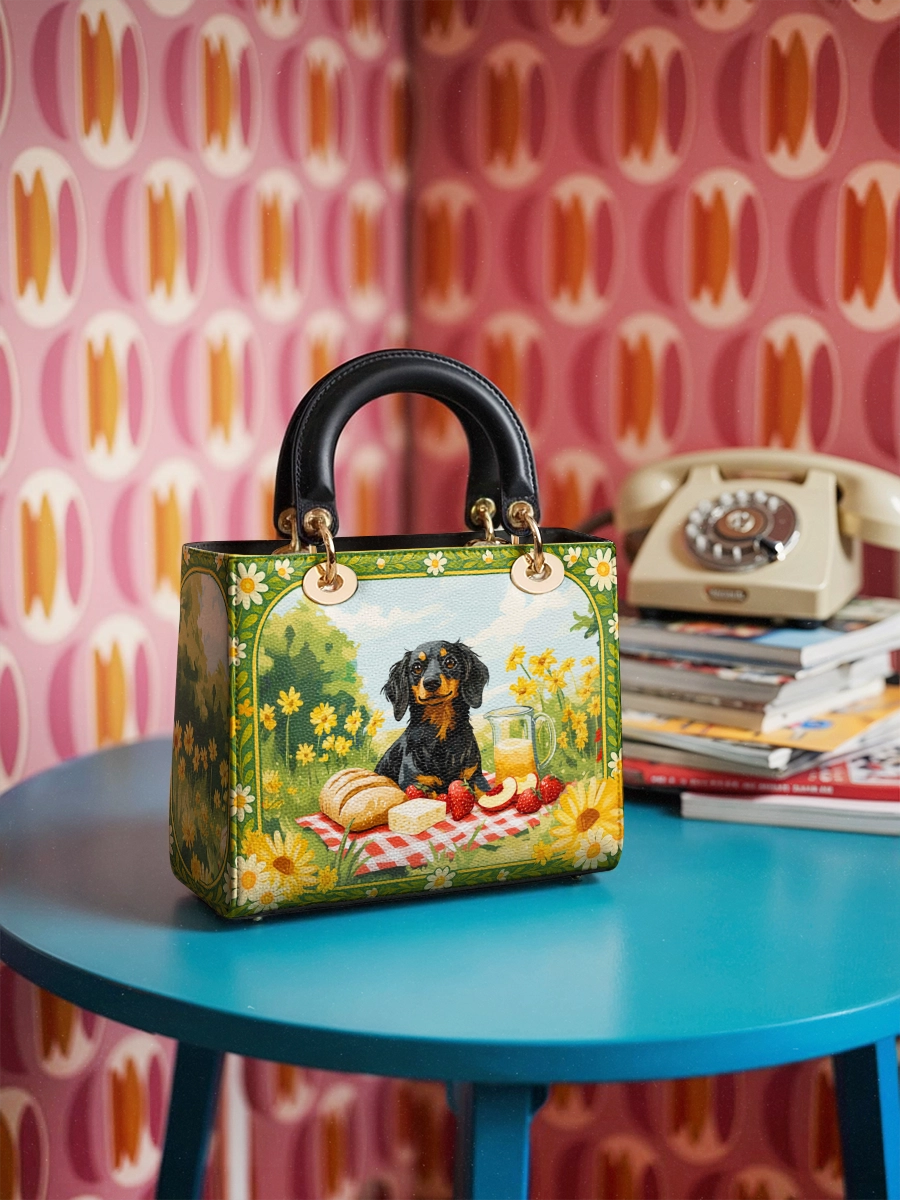 DachyCharm Sunny Picnic Pup Lady Leather Bag