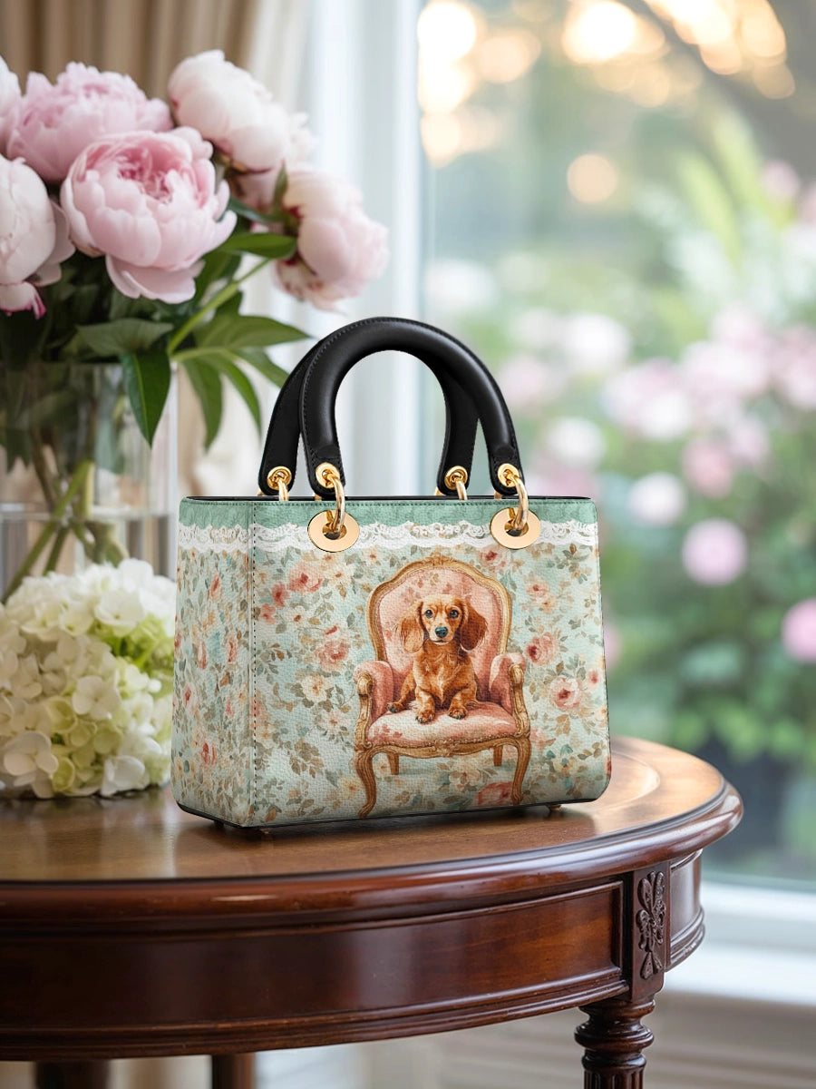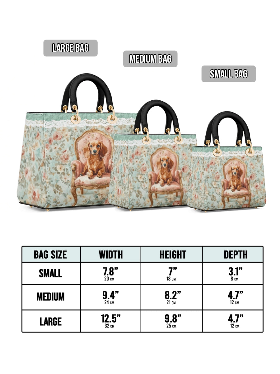 The Lady Leather Bag by DachyCharm brings timeless elegance to everyday moments. With its structured silhouette, sturdy top handles, and charming details, it’s the perfect blend of grace and personality — made for dachshund lovers who adore a touch of sophistication.