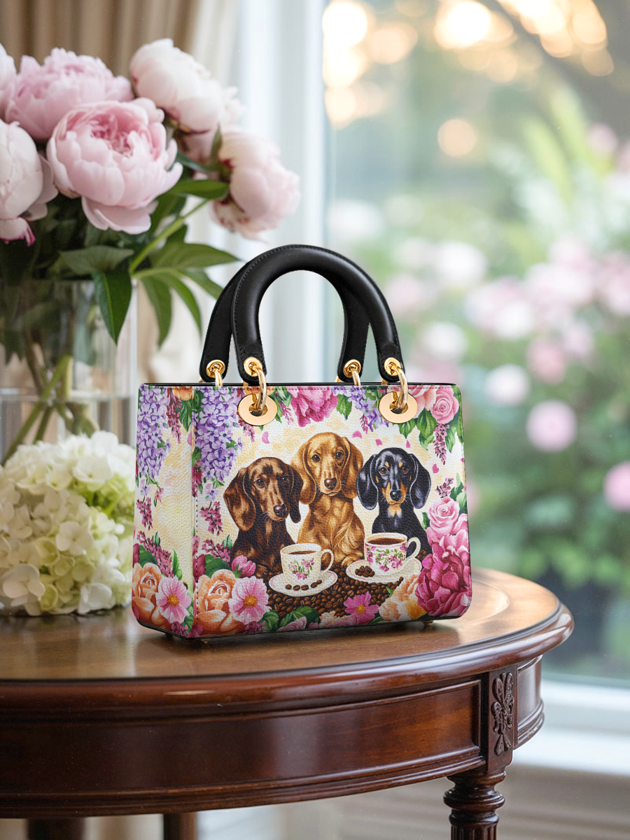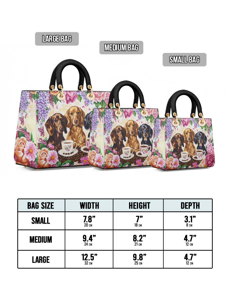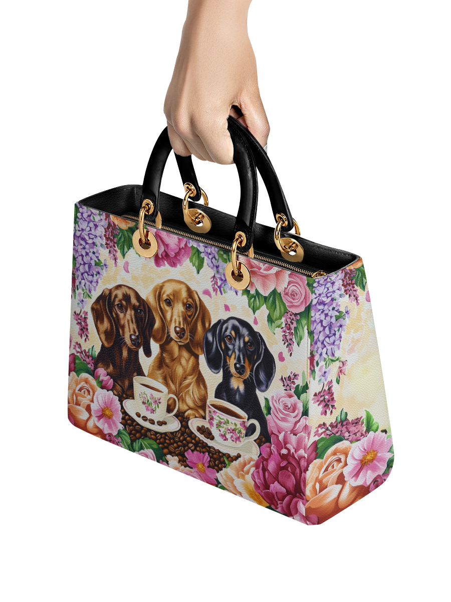 The Lady Leather Bag by DachyCharm brings timeless elegance to everyday moments. With its structured silhouette, sturdy top handles, and charming details, it’s the perfect blend of grace and personality — made for dachshund lovers who adore a touch of sophistication.