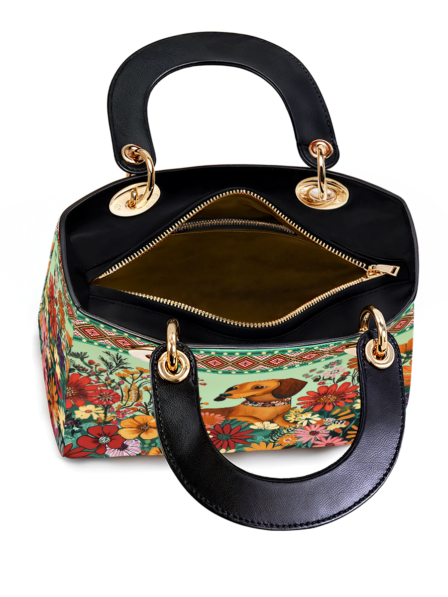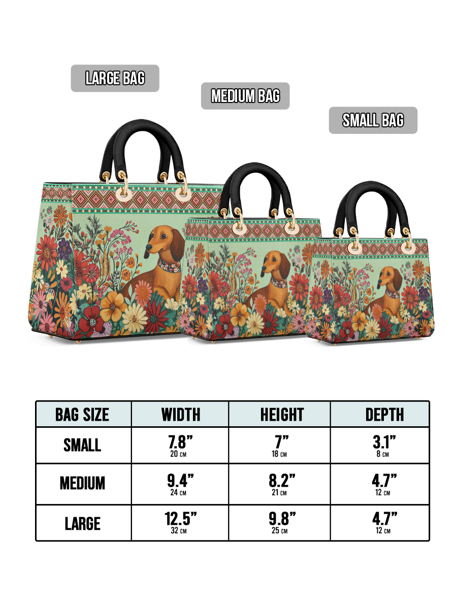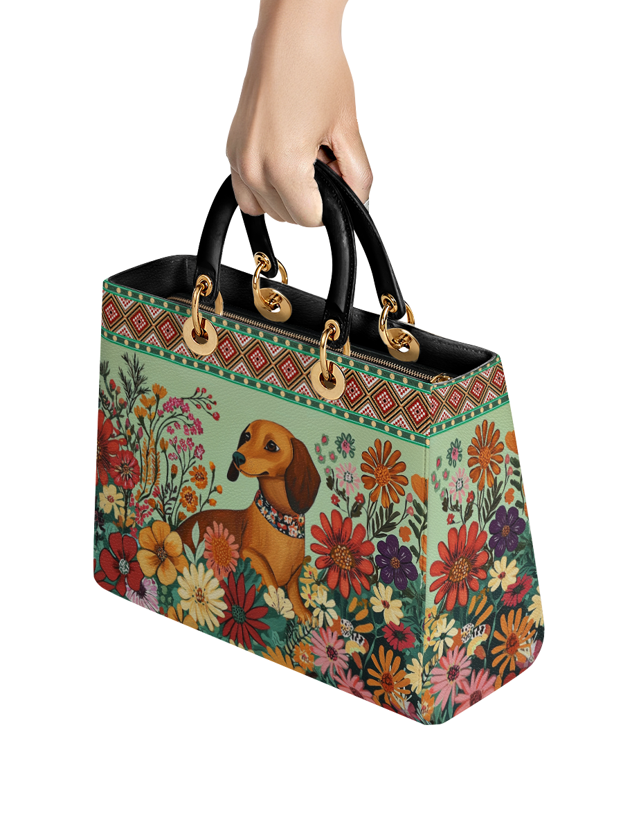 The Lady Leather Bag by DachyCharm brings timeless elegance to everyday moments. With its structured silhouette, sturdy top handles, and charming details, it’s the perfect blend of grace and personality — made for dachshund lovers who adore a touch of sophistication.
