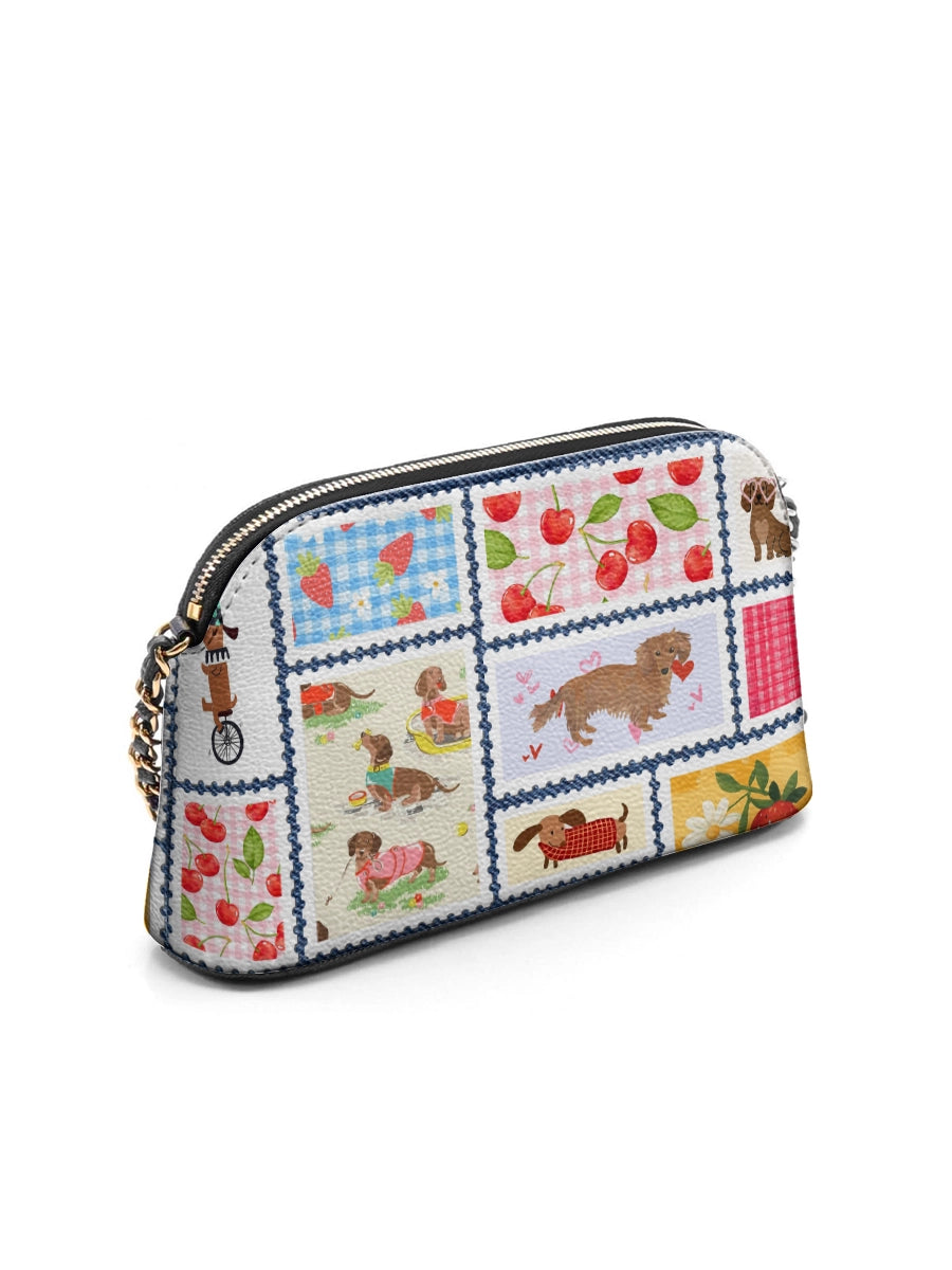 DachyCharm Berry Doxie Quilt Leather Crossbody Bag