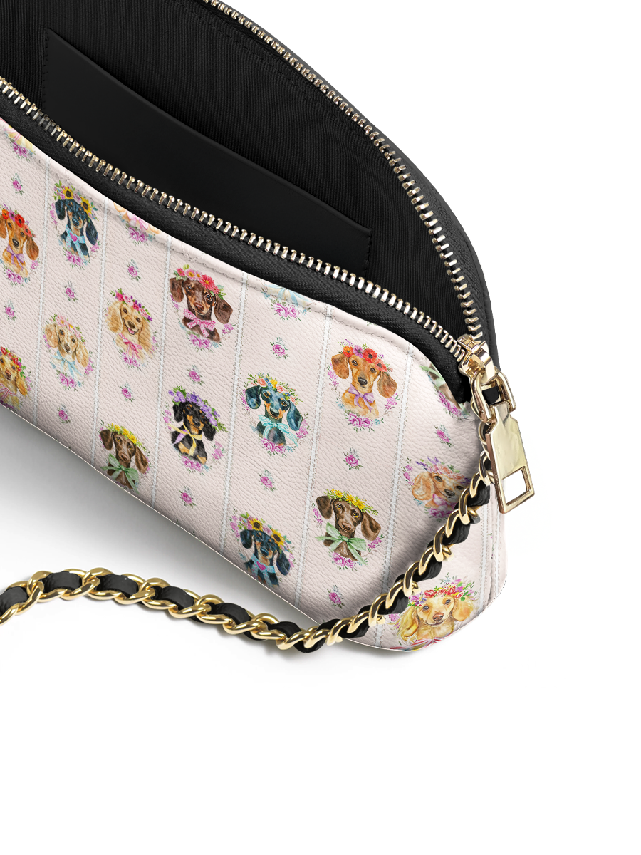 Thoughtfully crafted with charm and character, the DachyCharm Crossbody Bag blends playful spirit with timeless design. Its petite silhouette, sleek chain strap, and whimsical dachshund artwork turn everyday outings into moments of joy and self-expression