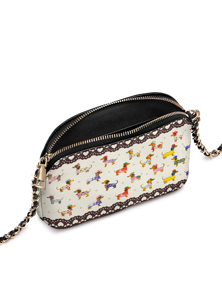 Thoughtfully crafted with charm and character, the DachyCharm Crossbody Bag blends playful spirit with timeless design. Its petite silhouette, sleek chain strap, and whimsical dachshund artwork turn everyday outings into moments of joy and self-expression