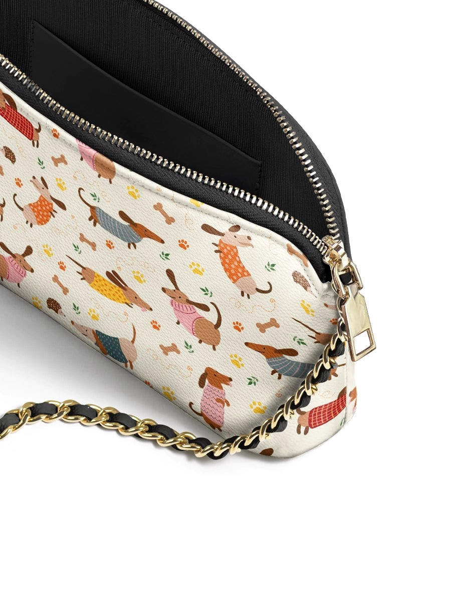 Thoughtfully crafted with charm and character, the DachyCharm Crossbody Bag blends playful spirit with timeless design. Its petite silhouette, sleek chain strap, and whimsical dachshund artwork turn everyday outings into moments of joy and self-expression