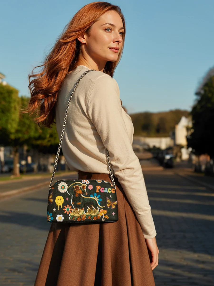 Thoughtfully crafted with charm and character, the DachyCharm Crossbody Bag blends playful spirit with timeless design. Its petite silhouette, sleek chain strap, and whimsical dachshund artwork turn everyday outings into moments of joy and self-expression