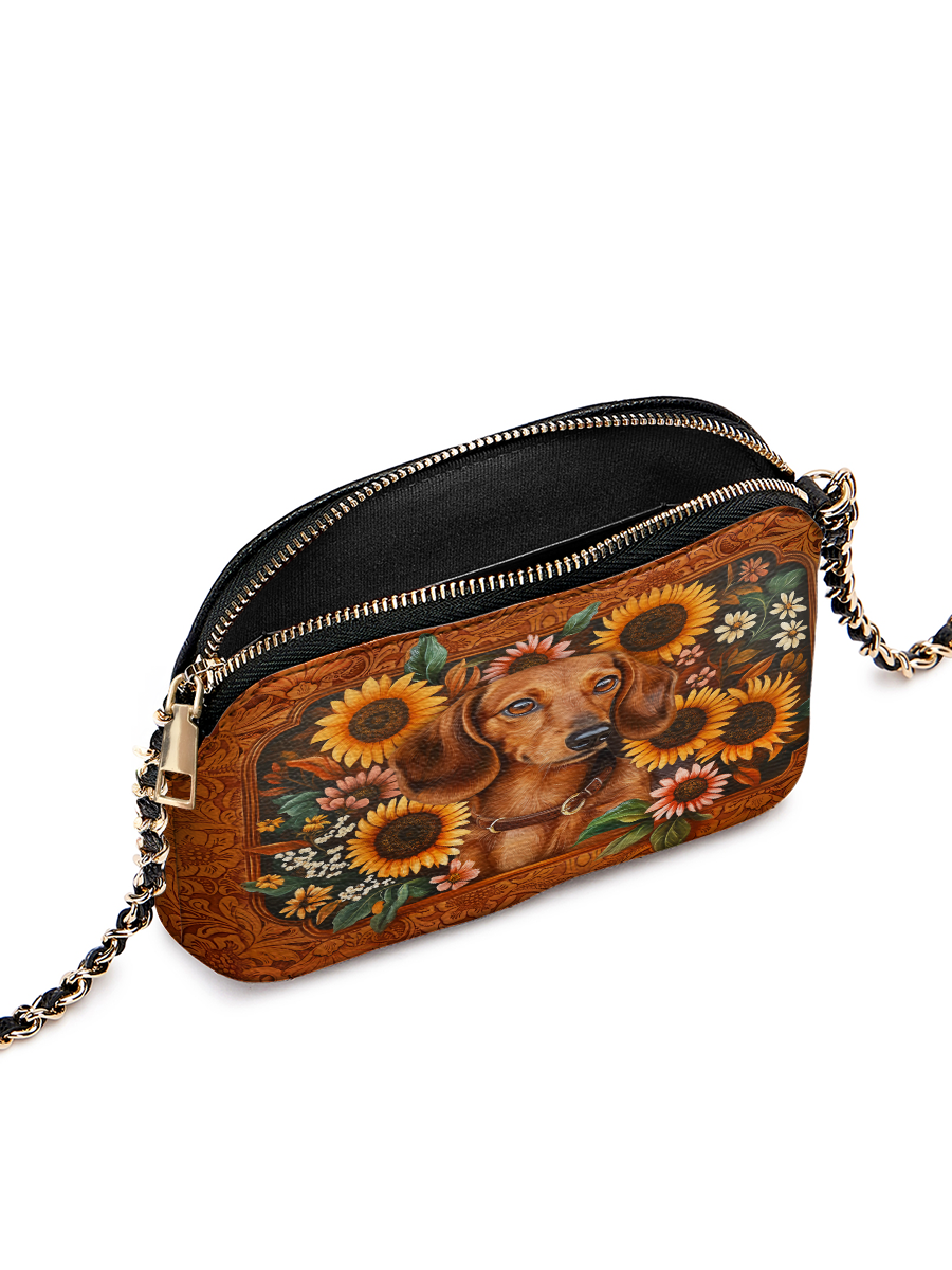 Thoughtfully crafted with charm and character, the DachyCharm Crossbody Bag blends playful spirit with timeless design. Its petite silhouette, sleek chain strap, and whimsical dachshund artwork turn everyday outings into moments of joy and self-expression