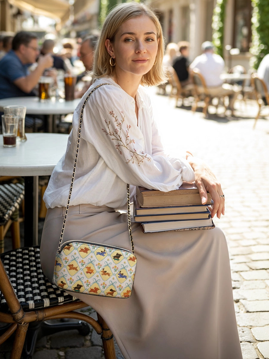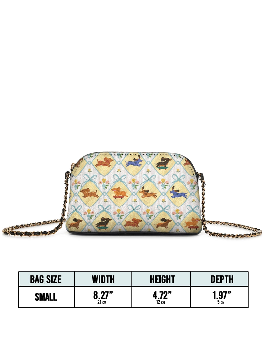Thoughtfully crafted with charm and character, the DachyCharm Crossbody Bag blends playful spirit with timeless design. Its petite silhouette, sleek chain strap, and whimsical dachshund artwork turn everyday outings into moments of joy and self-expression
