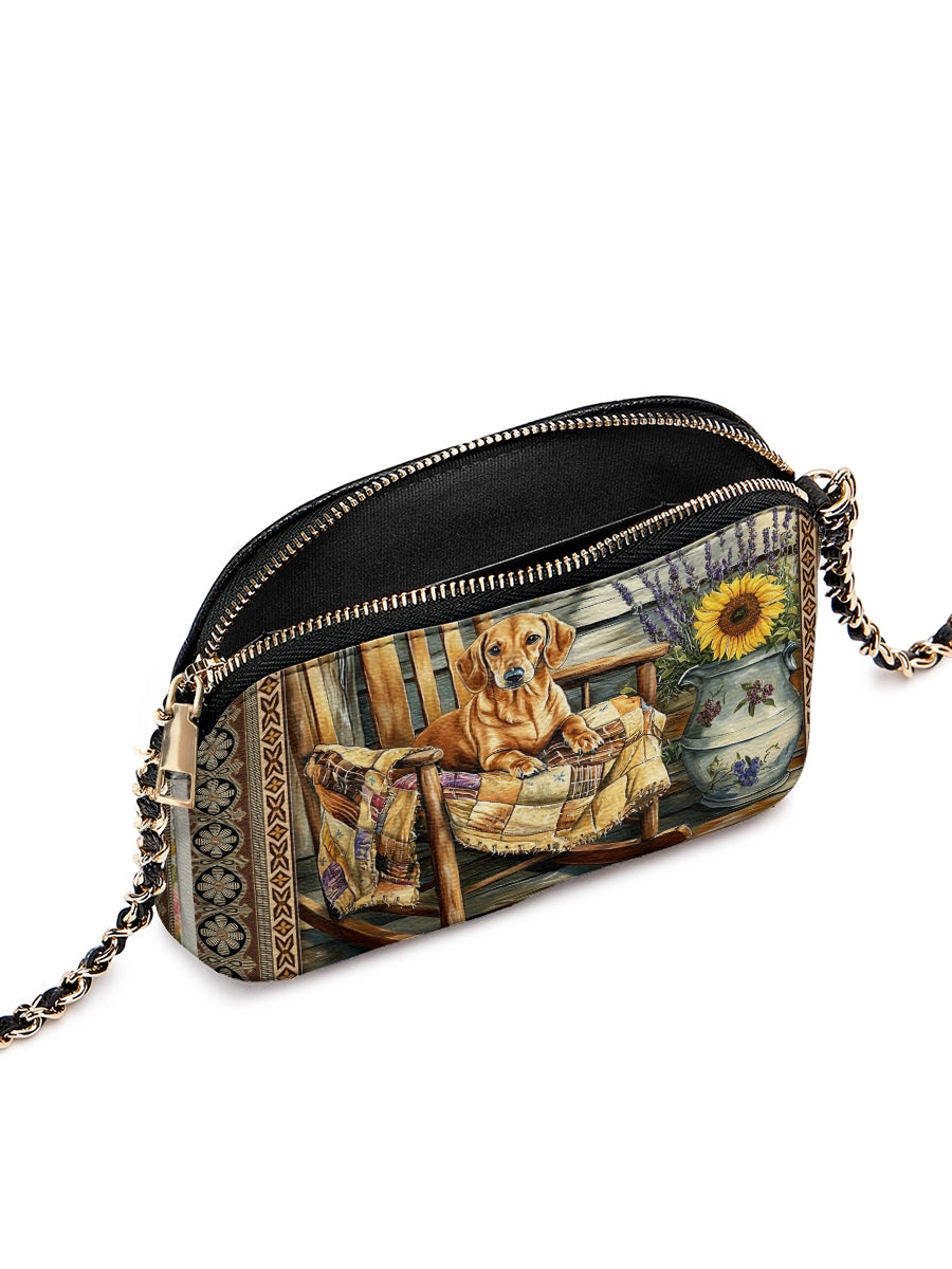 Thoughtfully crafted with charm and character, the DachyCharm Crossbody Bag blends playful spirit with timeless design. Its petite silhouette, sleek chain strap, and whimsical dachshund artwork turn everyday outings into moments of joy and self-expression