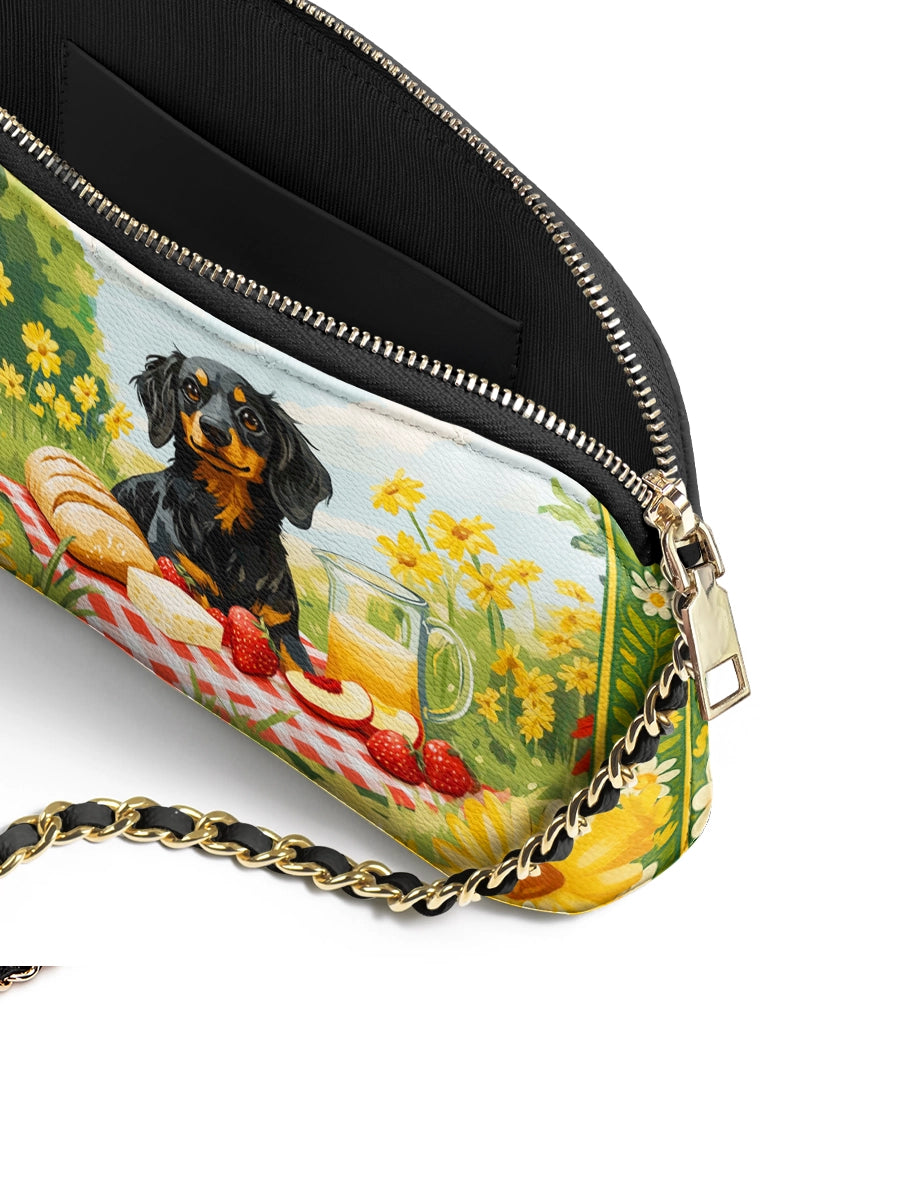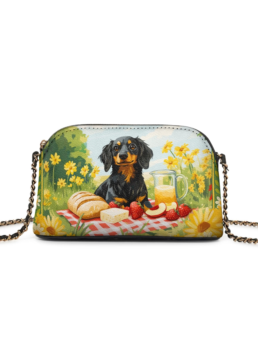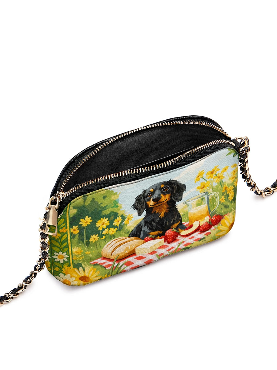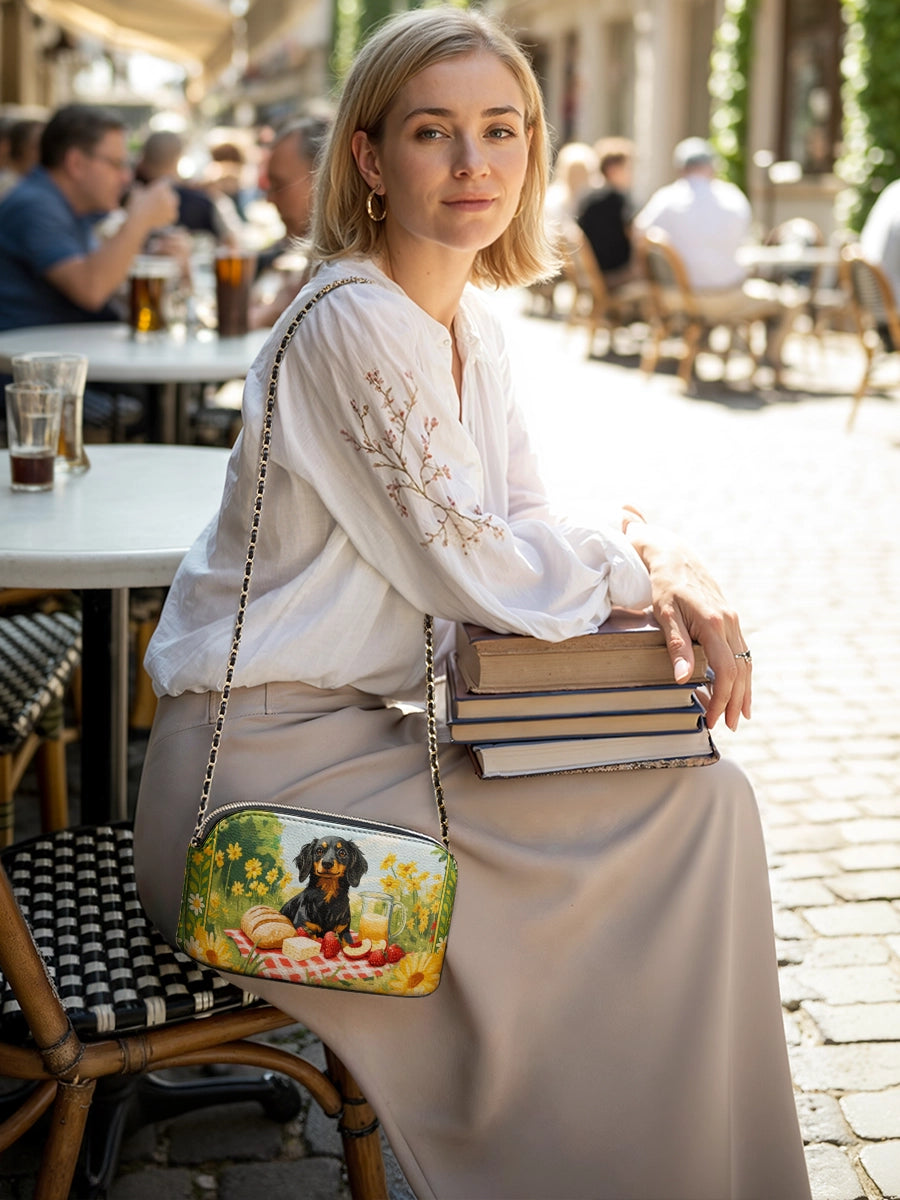 Thoughtfully crafted with charm and character, the DachyCharm Crossbody Bag blends playful spirit with timeless design. Its petite silhouette, sleek chain strap, and whimsical dachshund artwork turn everyday outings into moments of joy and self-expression