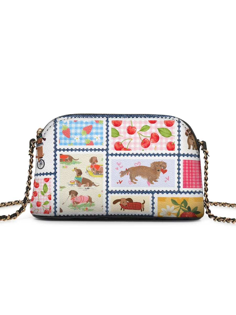 DachyCharm Berry Doxie Quilt Leather Crossbody Bag