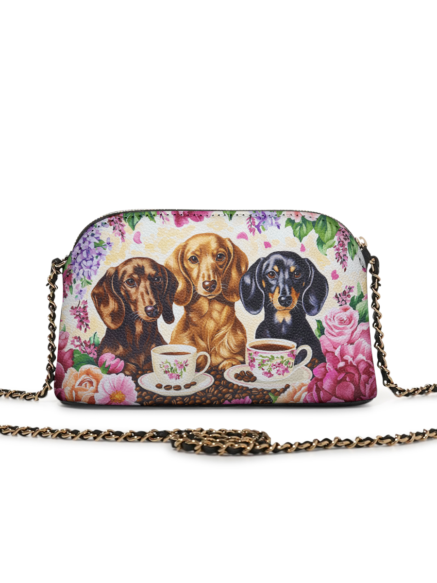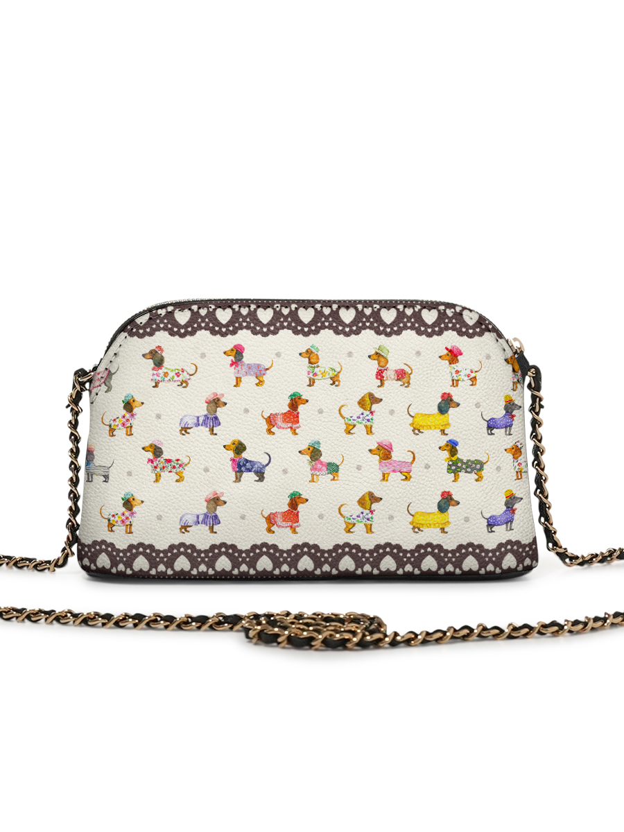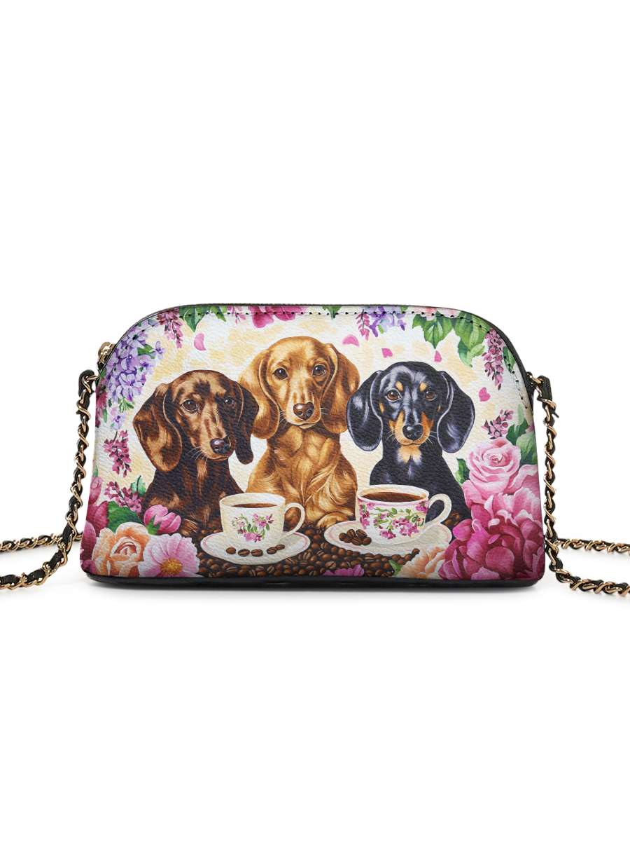 Leather crossbody bags with playful dachshund art—made to brighten your every day.