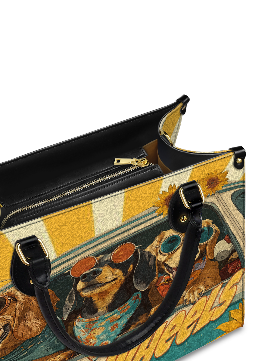 Take your style on the road with the Sunflower Woofs Leather Bag! 🚐🌻 This playful design features three happy pups riding with the windows down, wearing shades and bandanas, soaking up the sunshine. Perfect for dog lovers and free spirits, this bag brings joy, adventure, and a touch of retro charm to your everyday look.