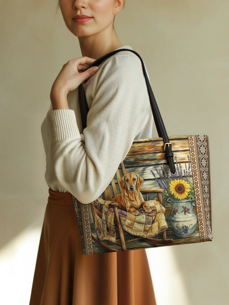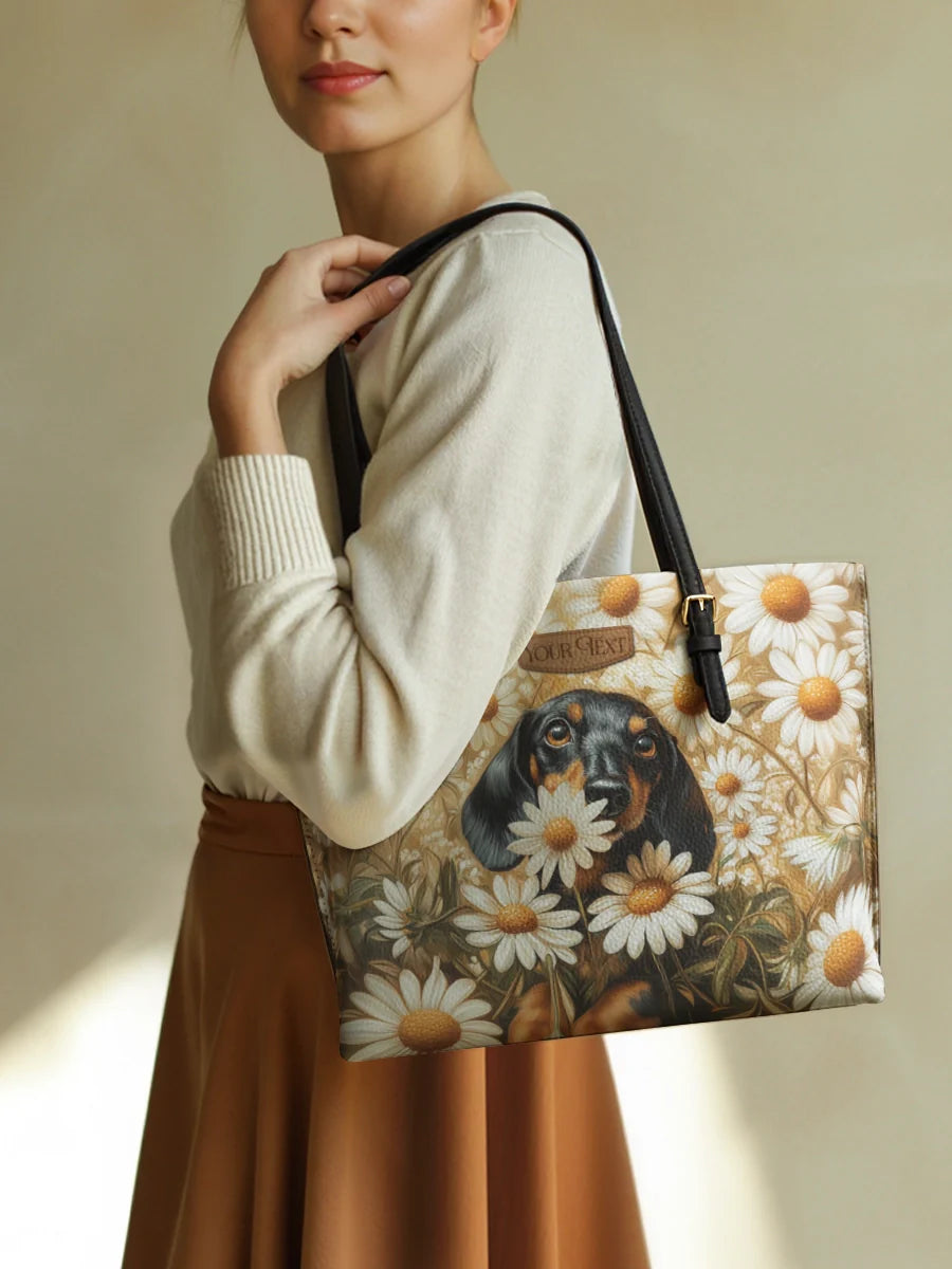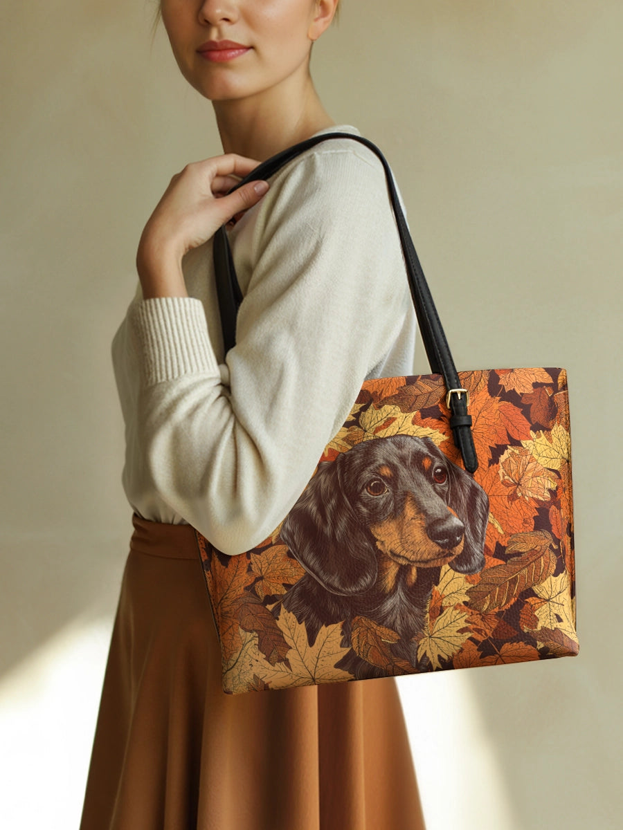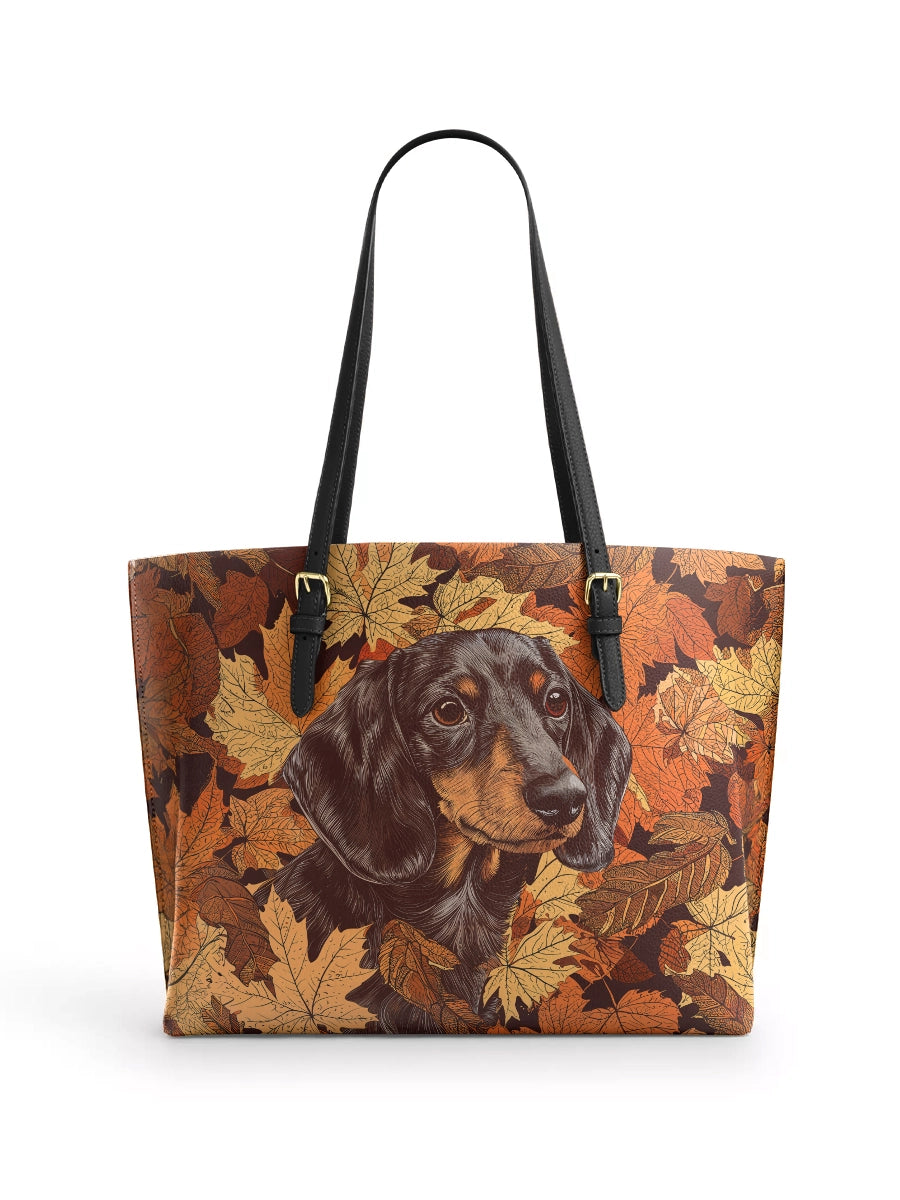 DachyCharm Autumn Pup Whisper Leather Tote Bag