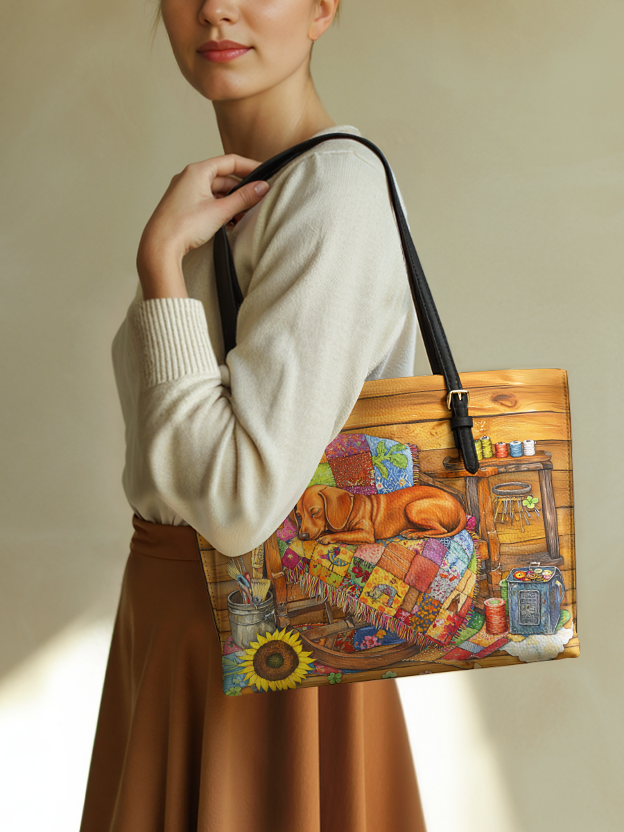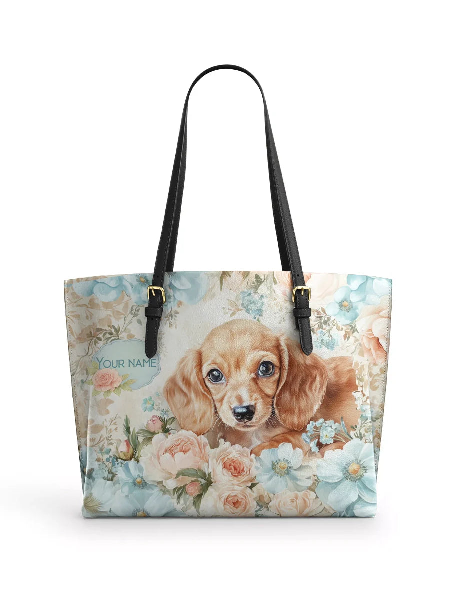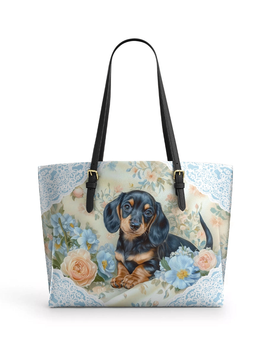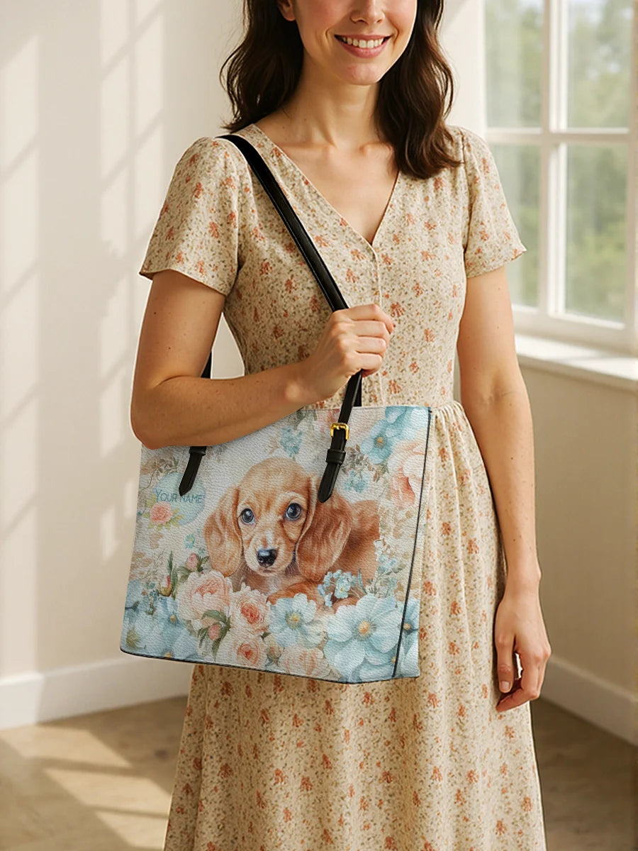 DachyCharm Autumn Pup Whisper Leather Tote Bag