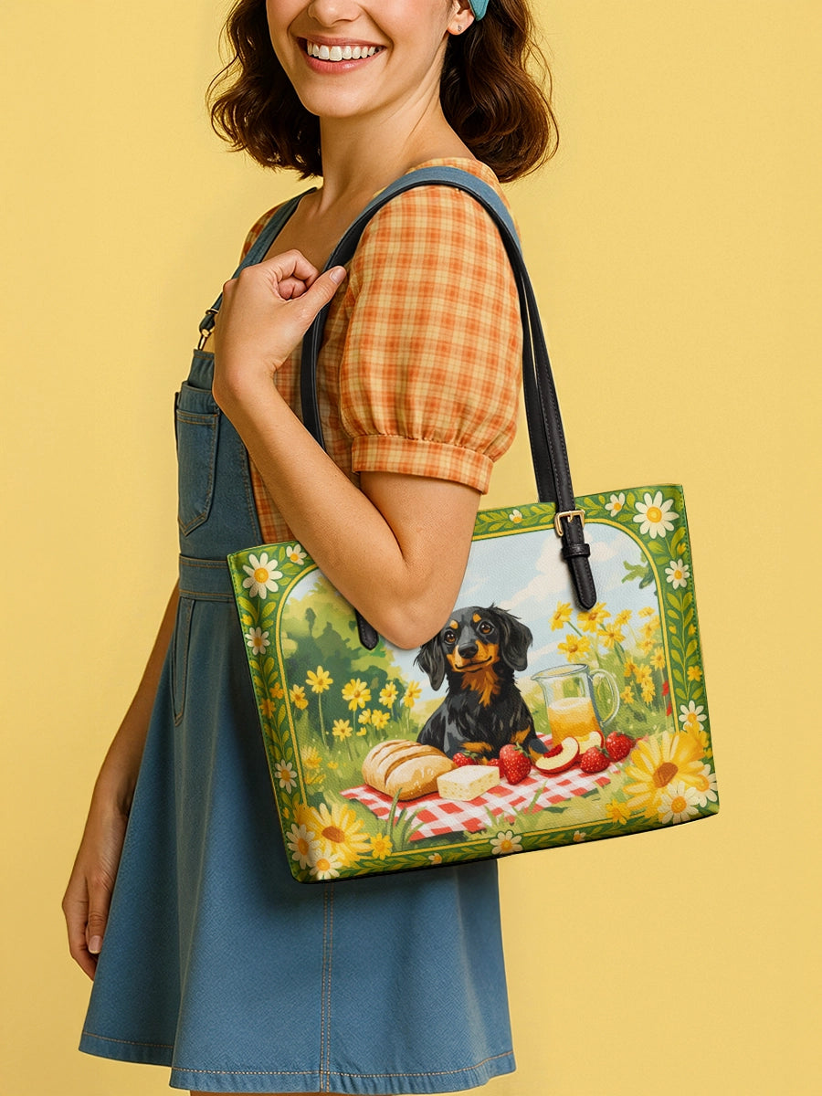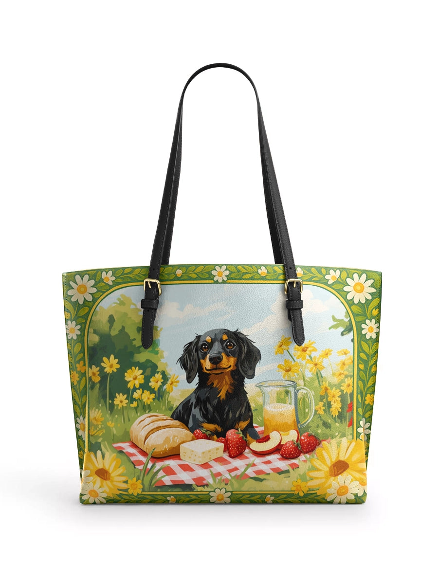 DachyCharm Sunny Picnic Pup Leather Tote Bag